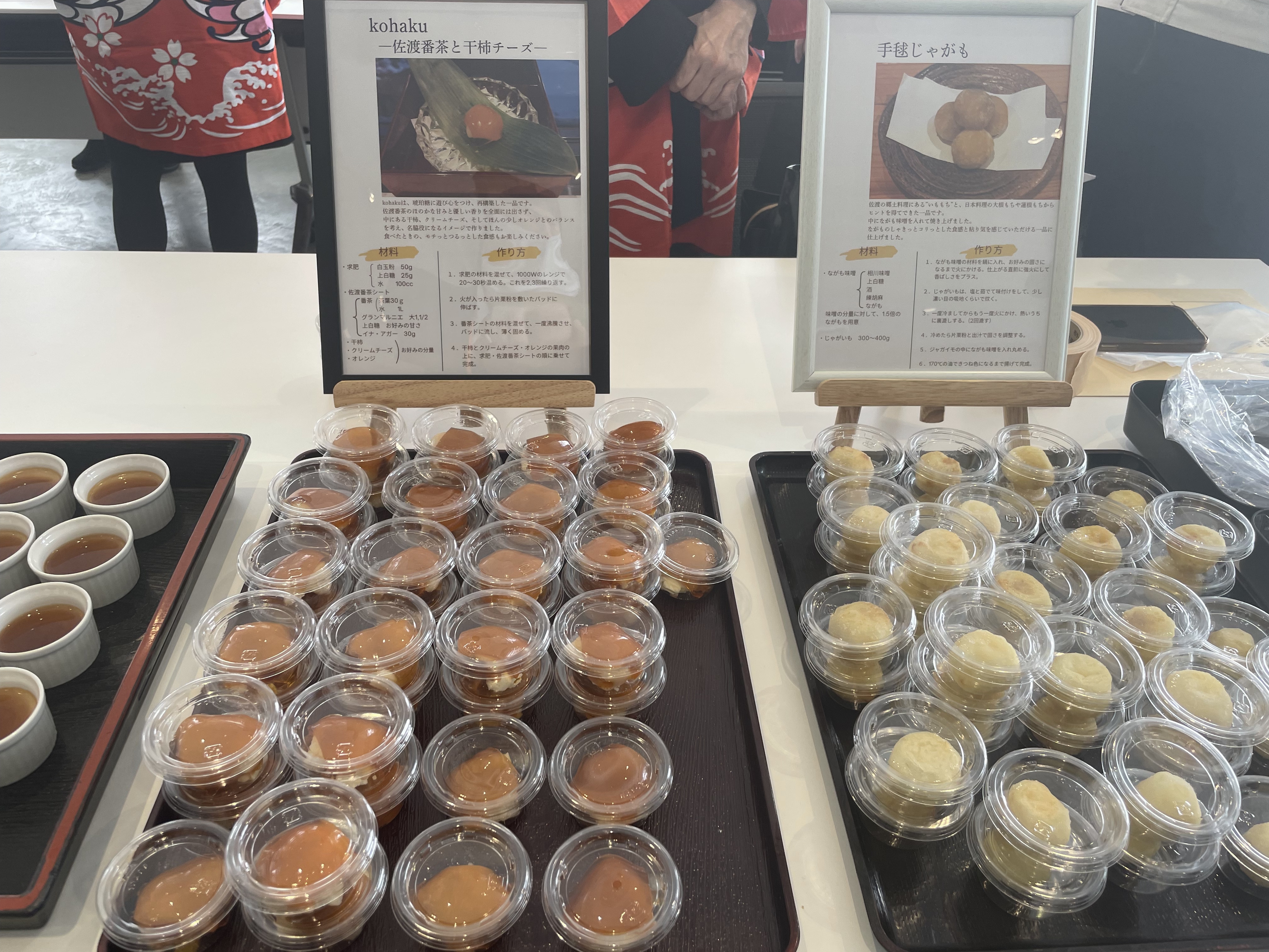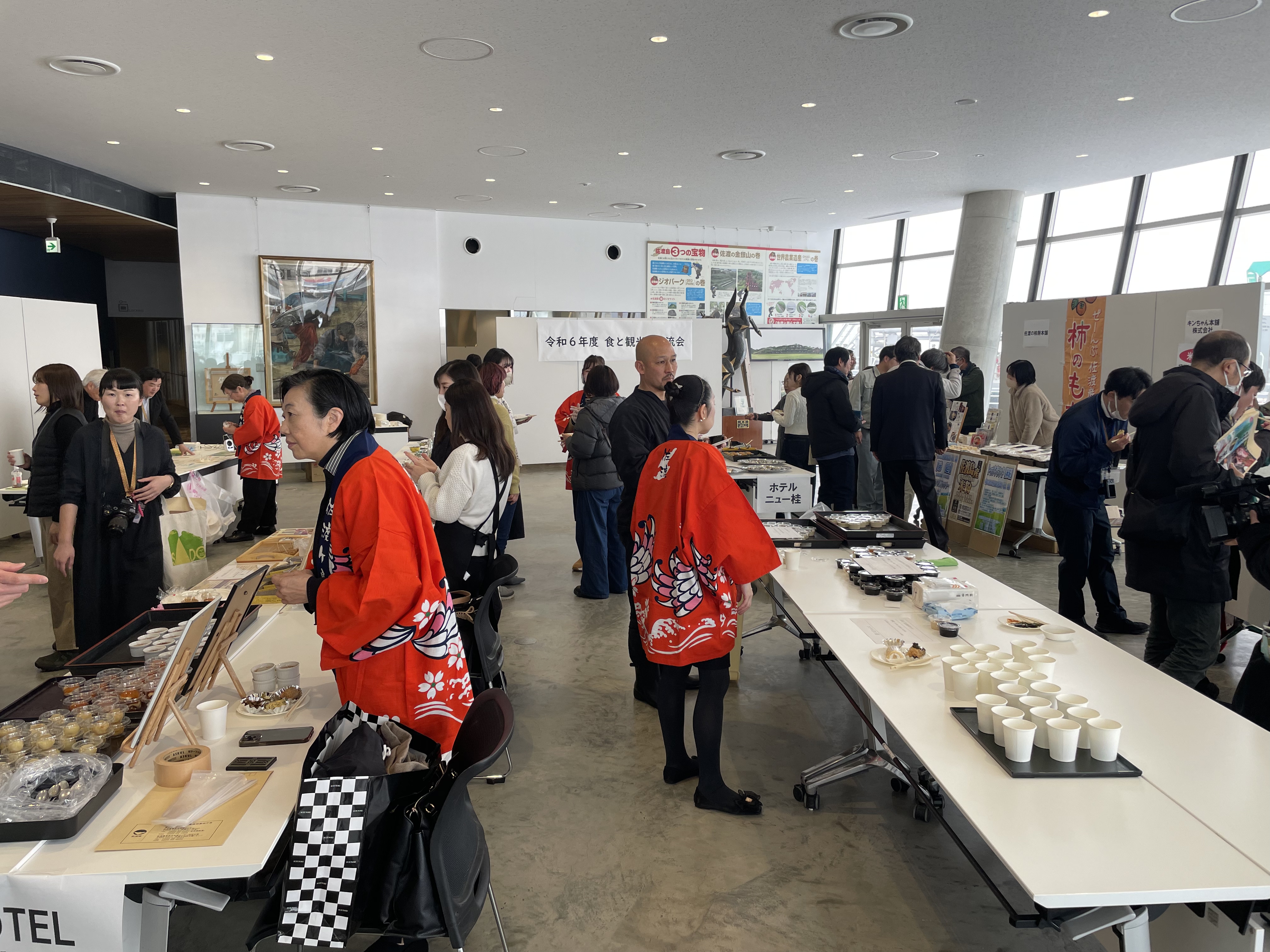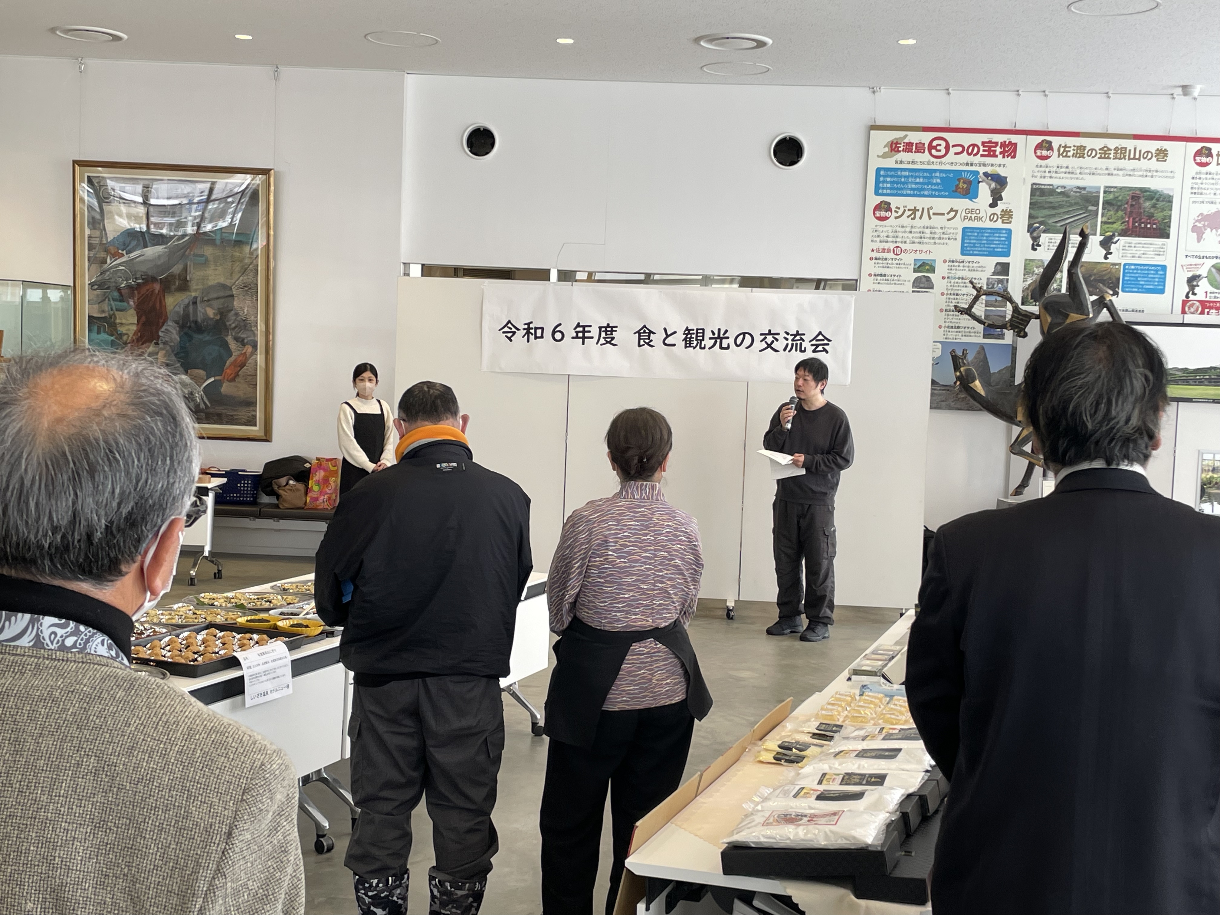 “食と観光の交流会”は、佐渡産食材の魅力を引き出し、さらなる利用の拡大を図るため、観光業者(ホテル・旅館など)による、佐渡ならではの食材を活用した新たな商品・メニューの紹介、試食などを行うものです。