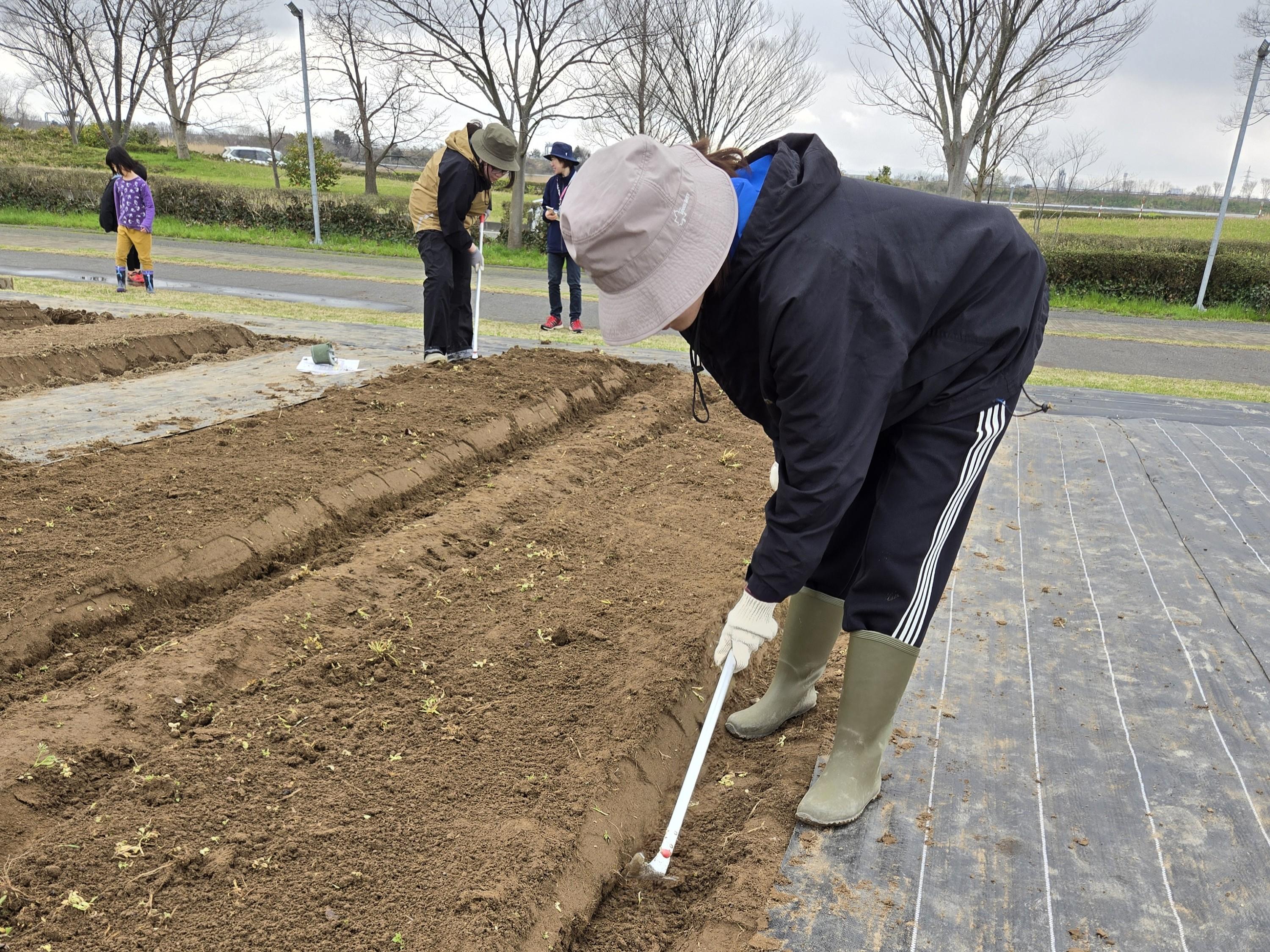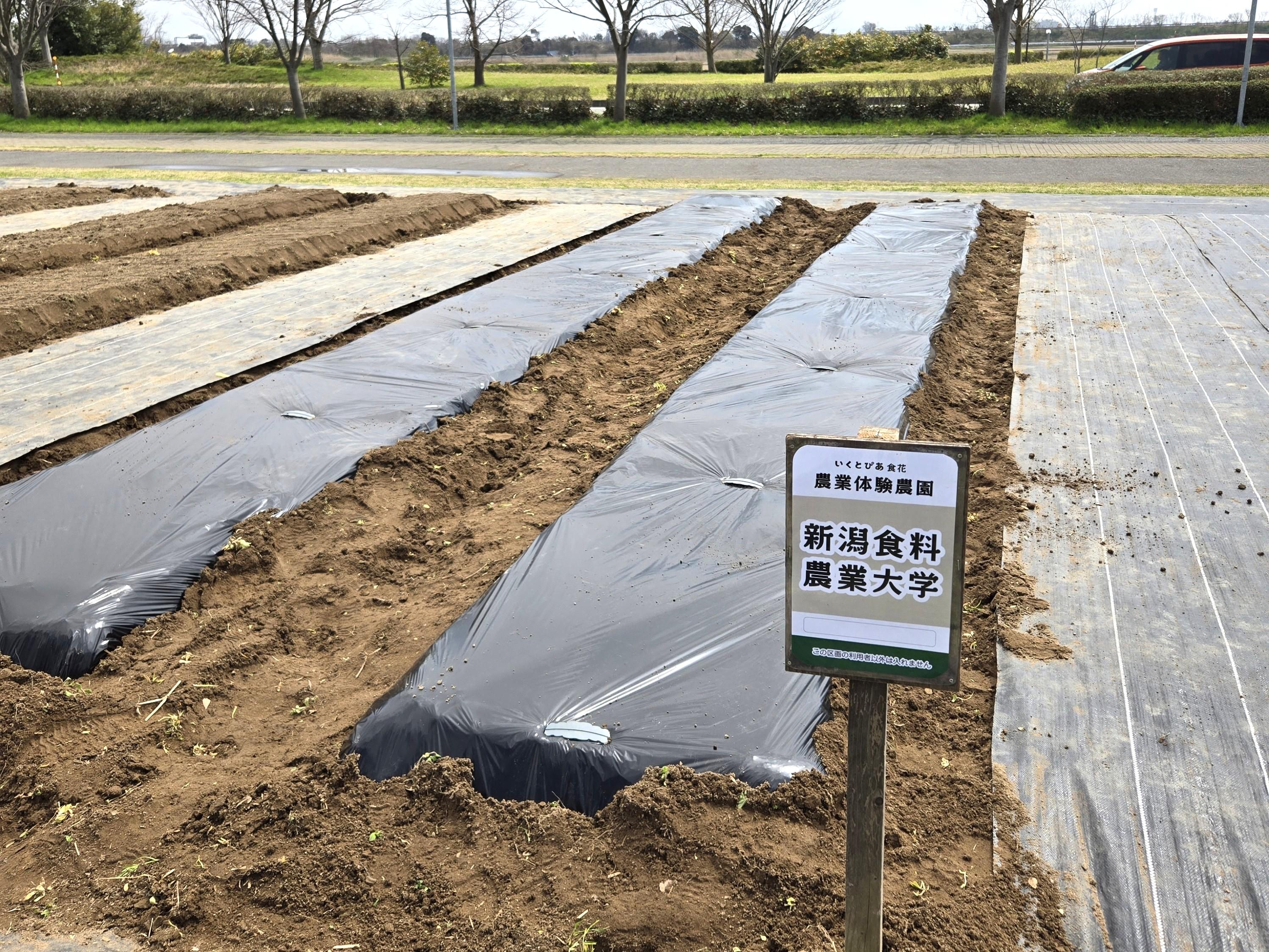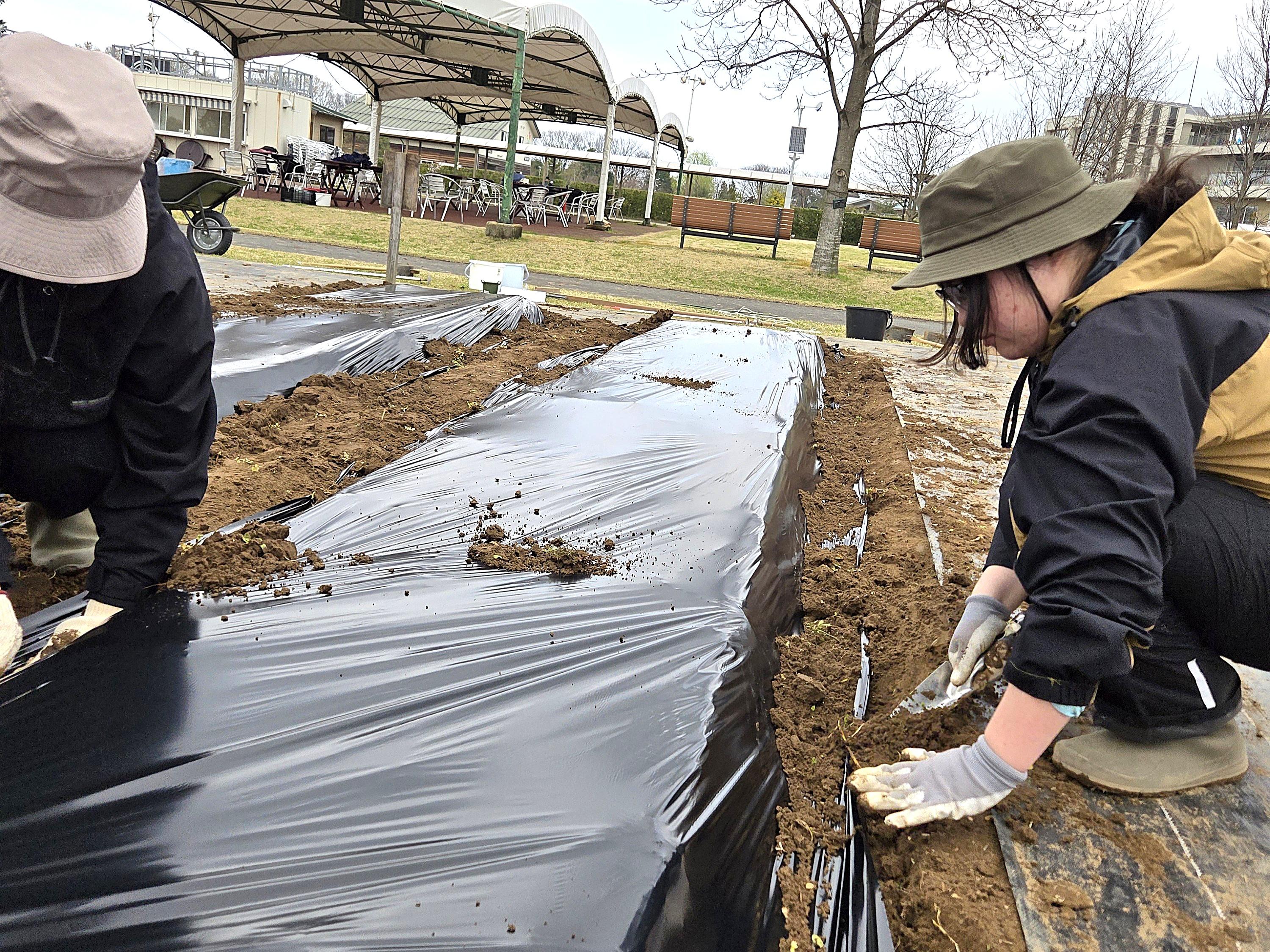 いくとぴあ食花体験農園での野菜栽培活動 ~畝立て・マルチ張り編~