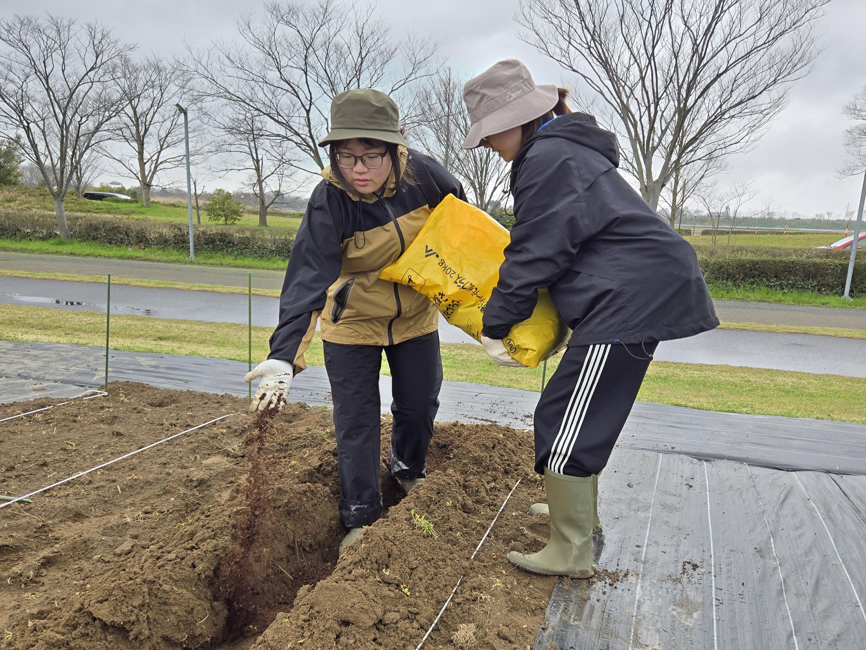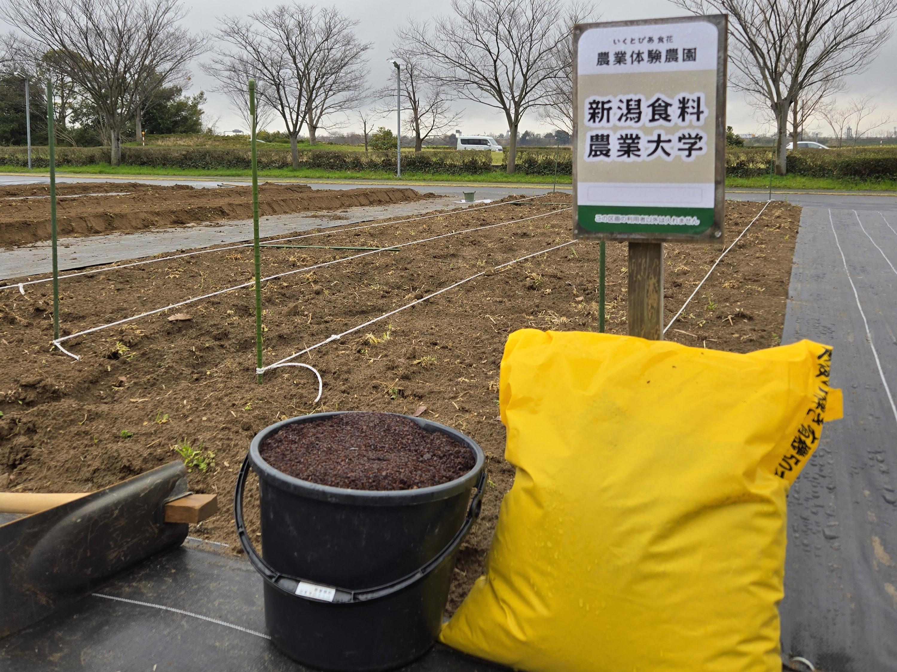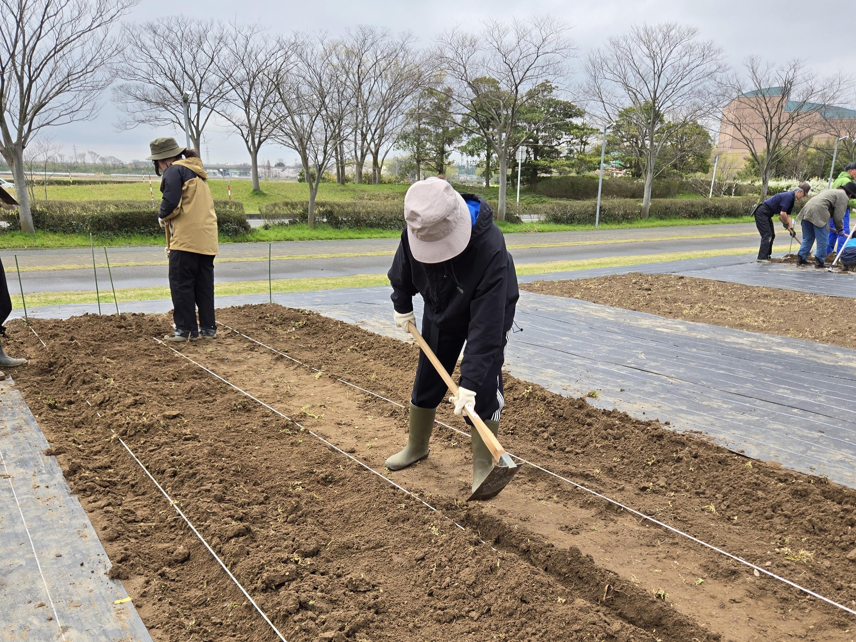 いくとぴあ食花体験農園での野菜栽培活動 ~畝立て・マルチ張り編~