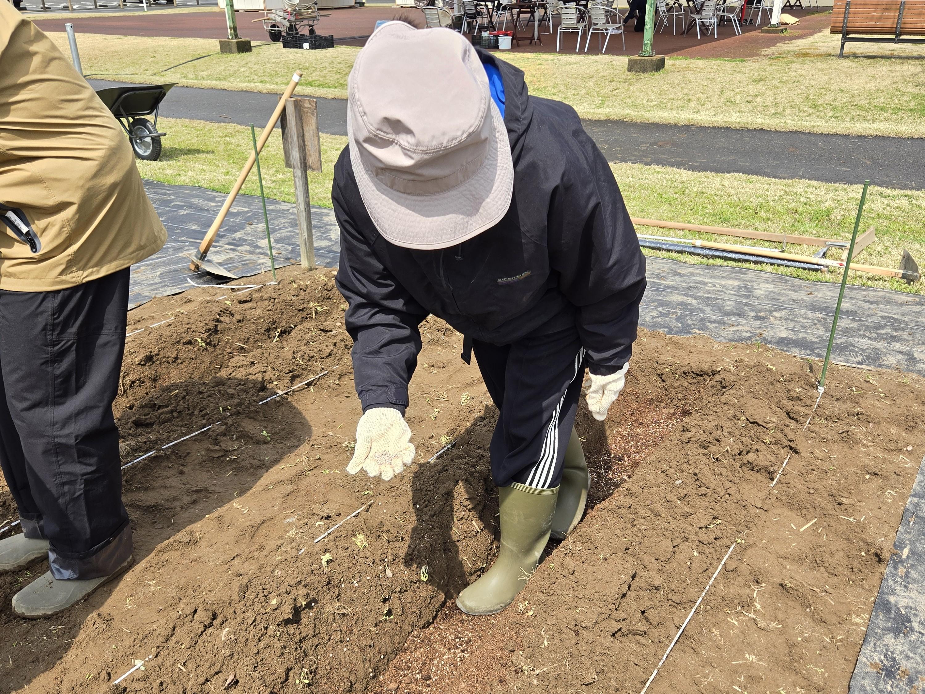 この後は、肥料を土になじませるため、少し時間をおいて種まきをします。