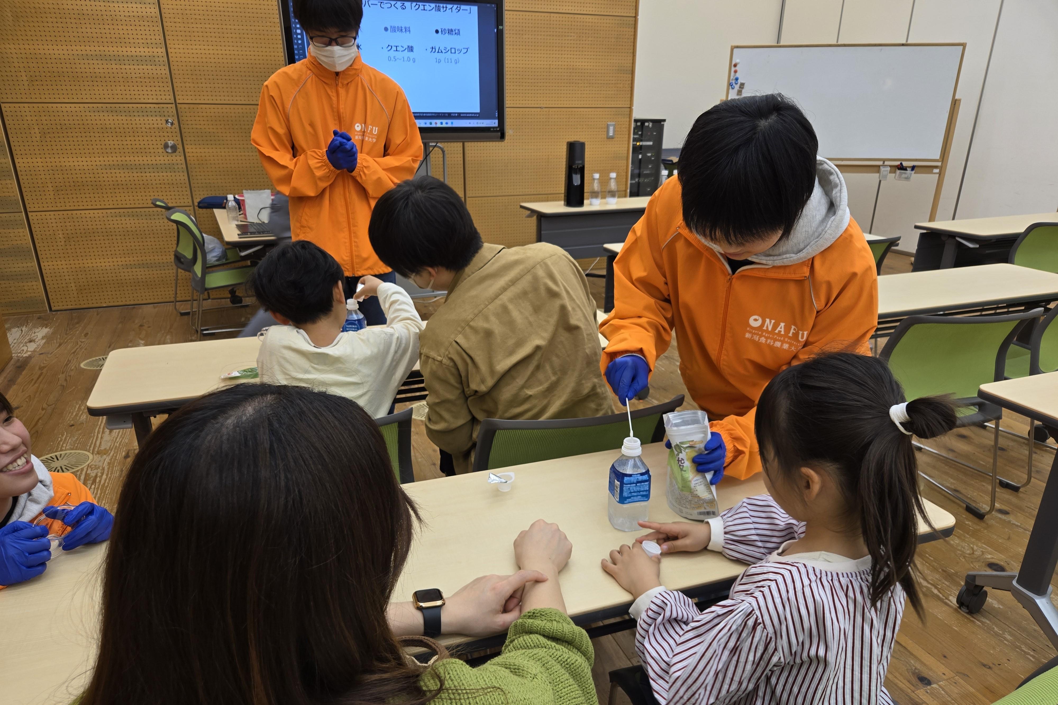 さらに、サイダーを飲みながら、今回使用した【ガムシロップ】、【クエン酸】の原材料をクイズ形式で出題。