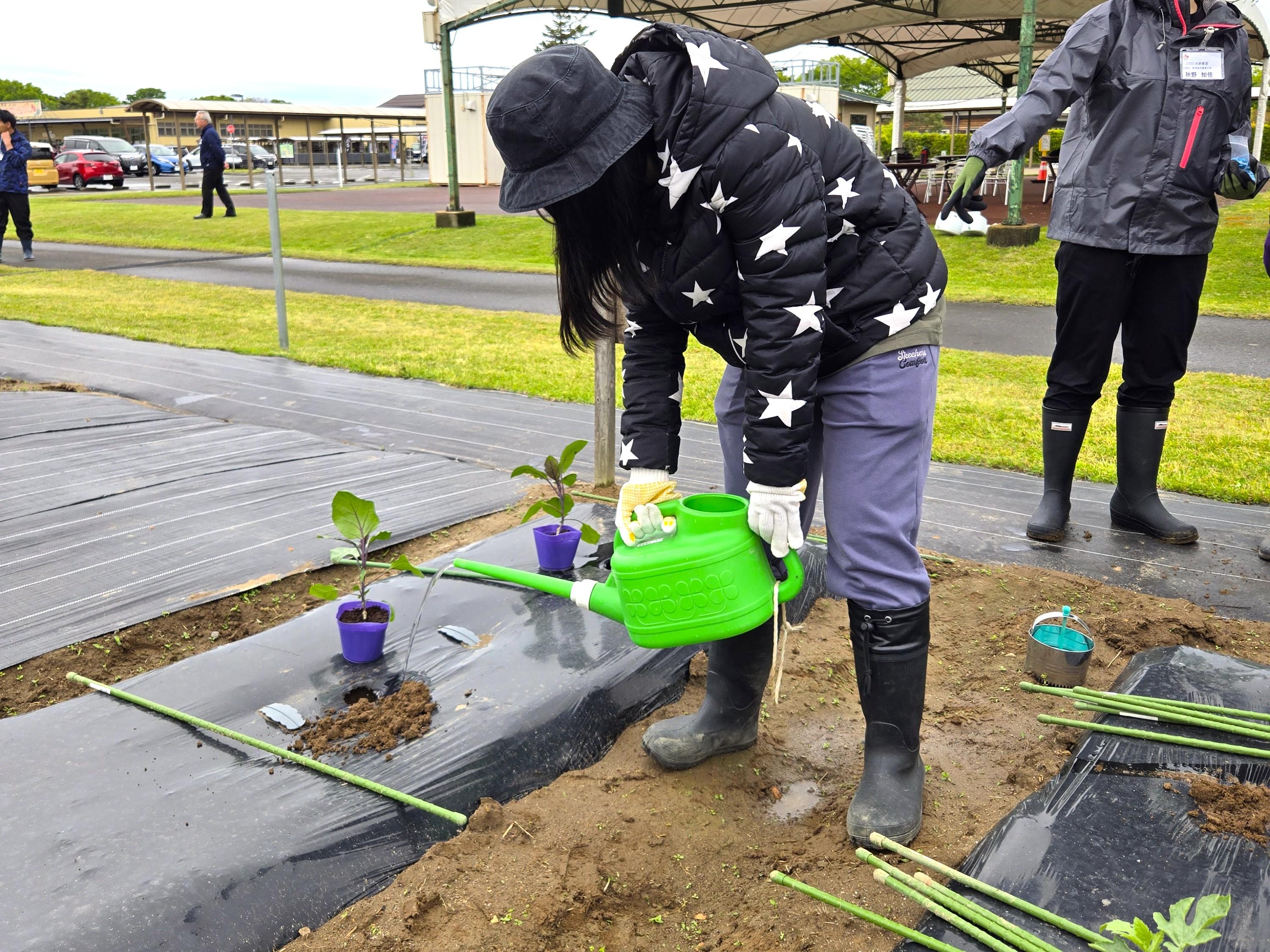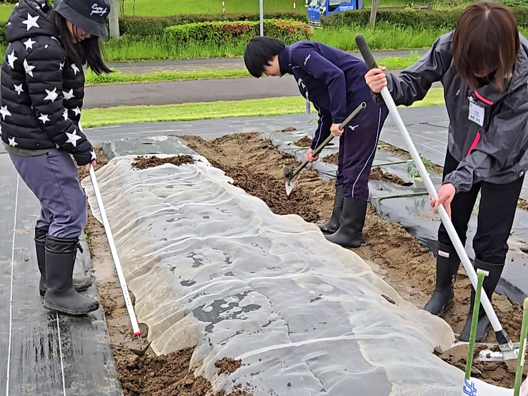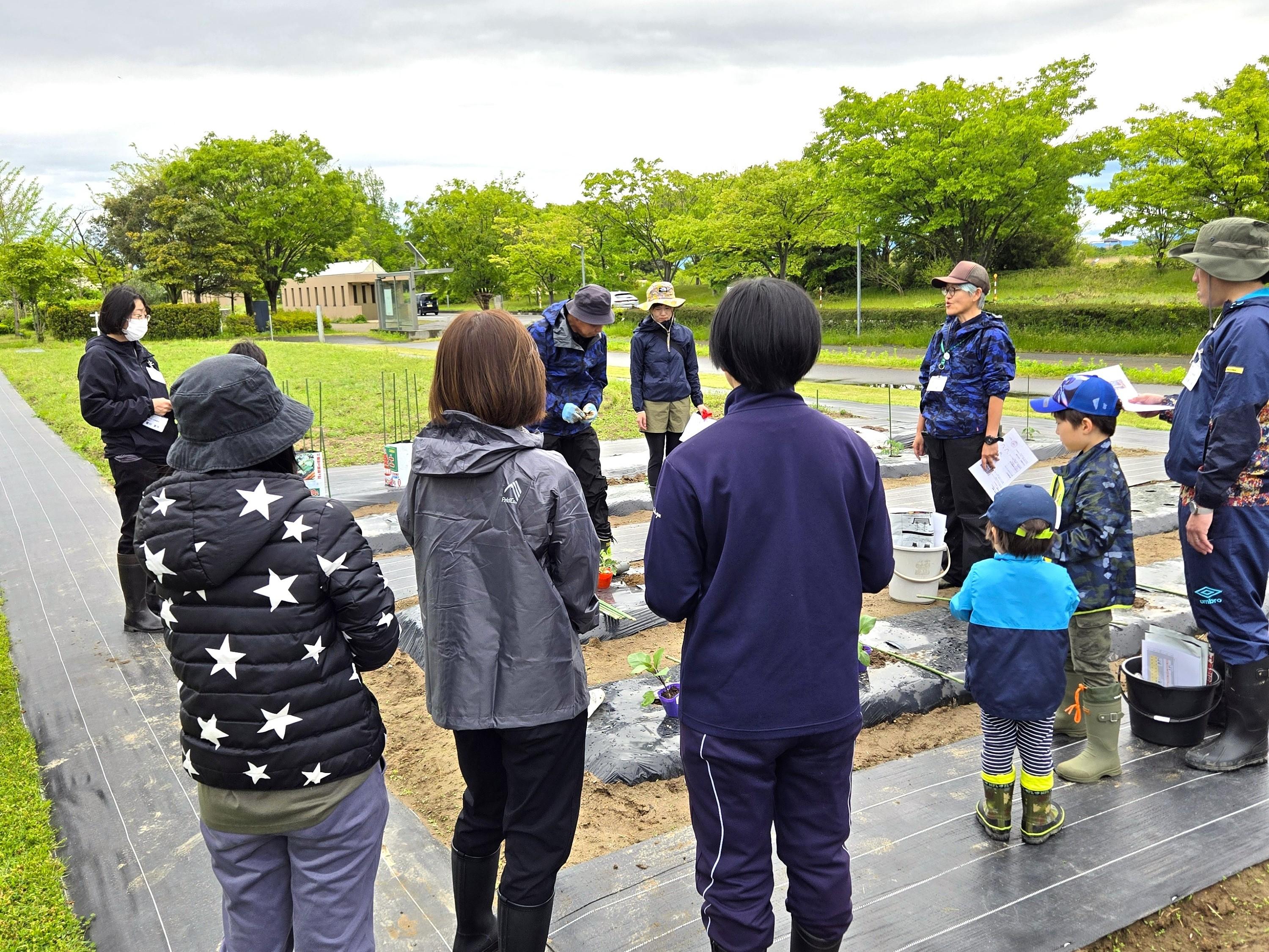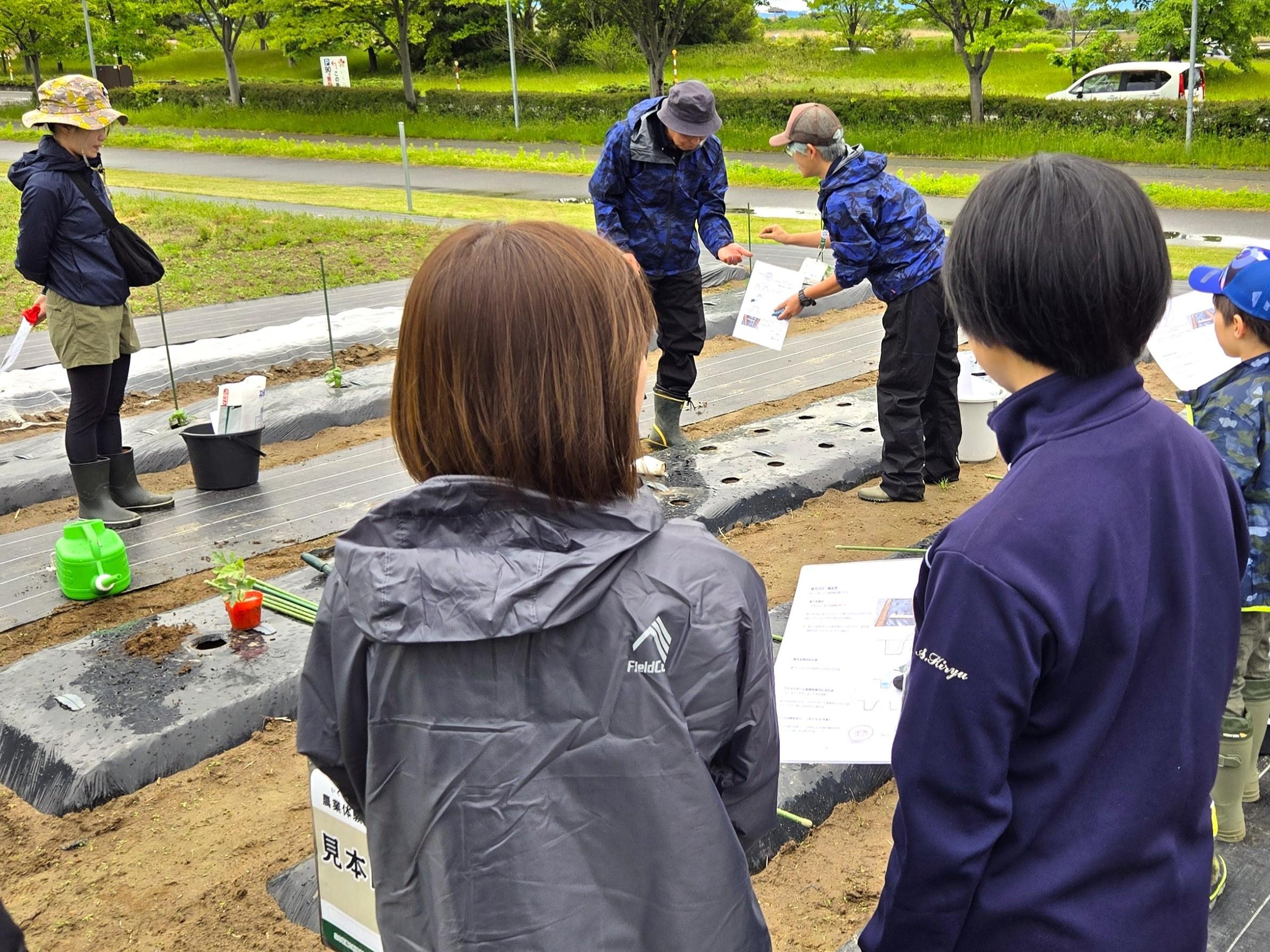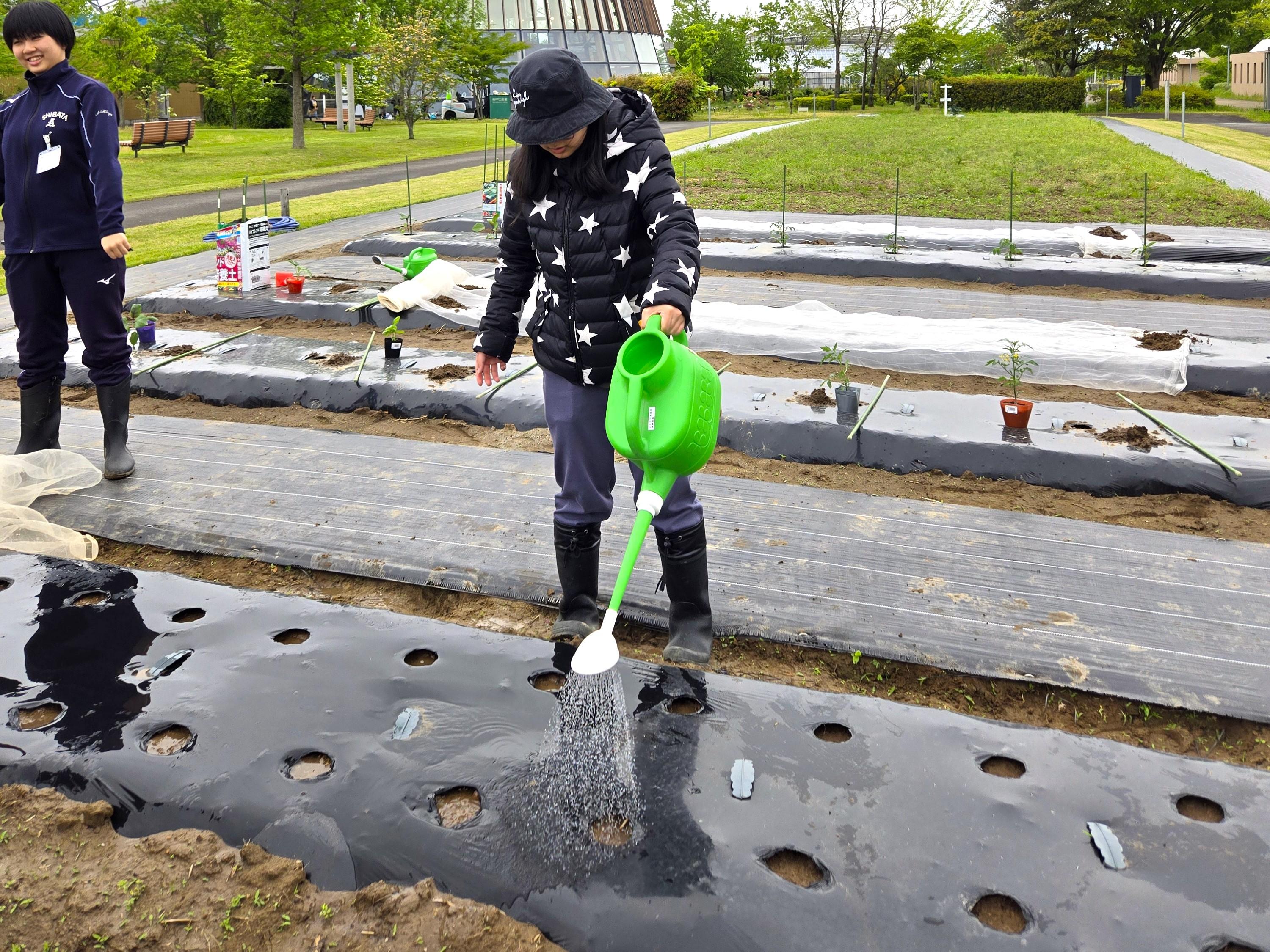 新潟市中央区にある【いくとぴあ食花 体験農園】にて、新潟食料農業大学専用区画を設けていただき、学生たちが夏野菜の栽培に取り組んでいます。