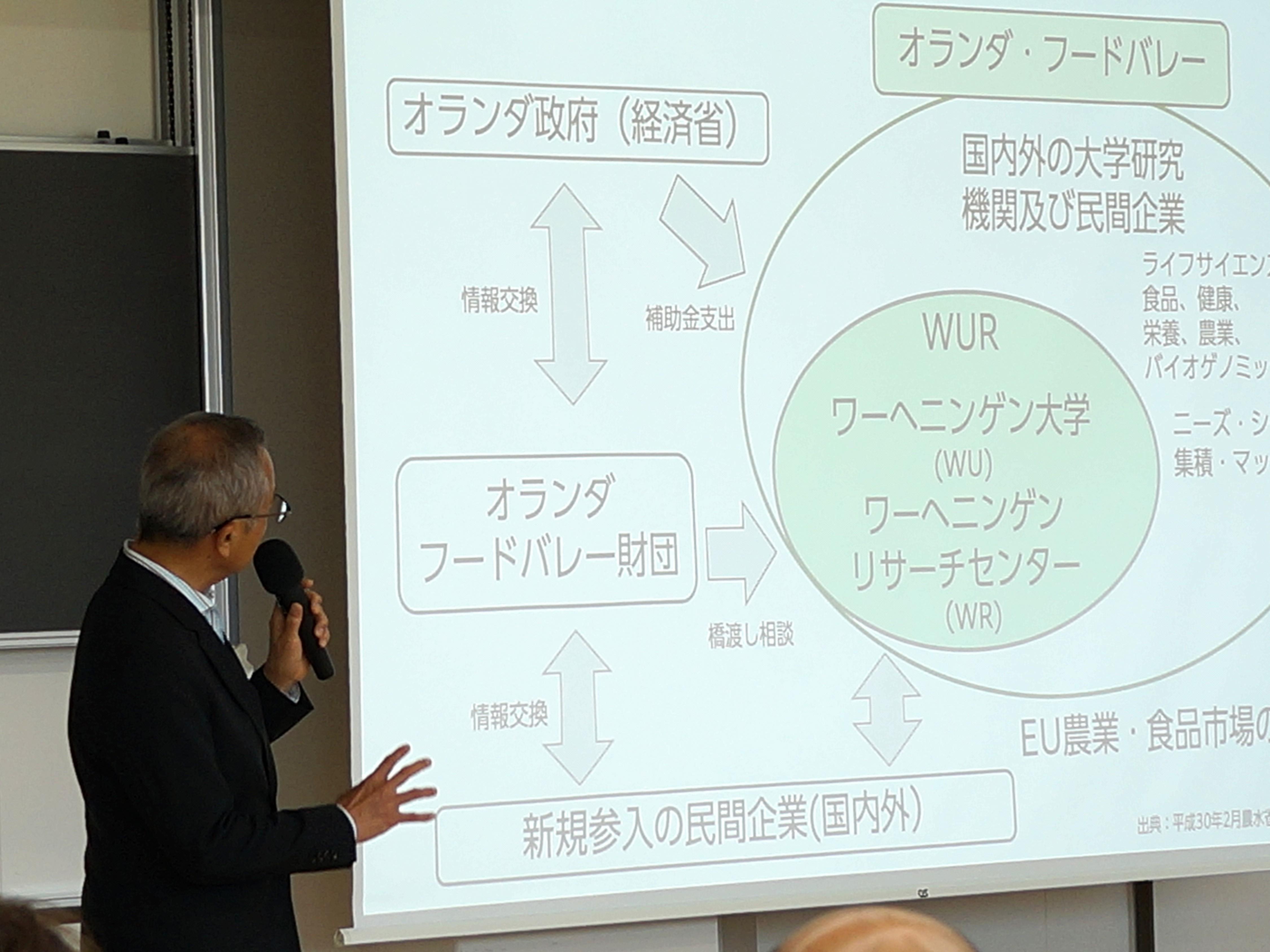 本学では、食料産業の発展方向を探り、情報を発信するために企業や研究機関等と連携し、アグロフードセミナーを実施しています。