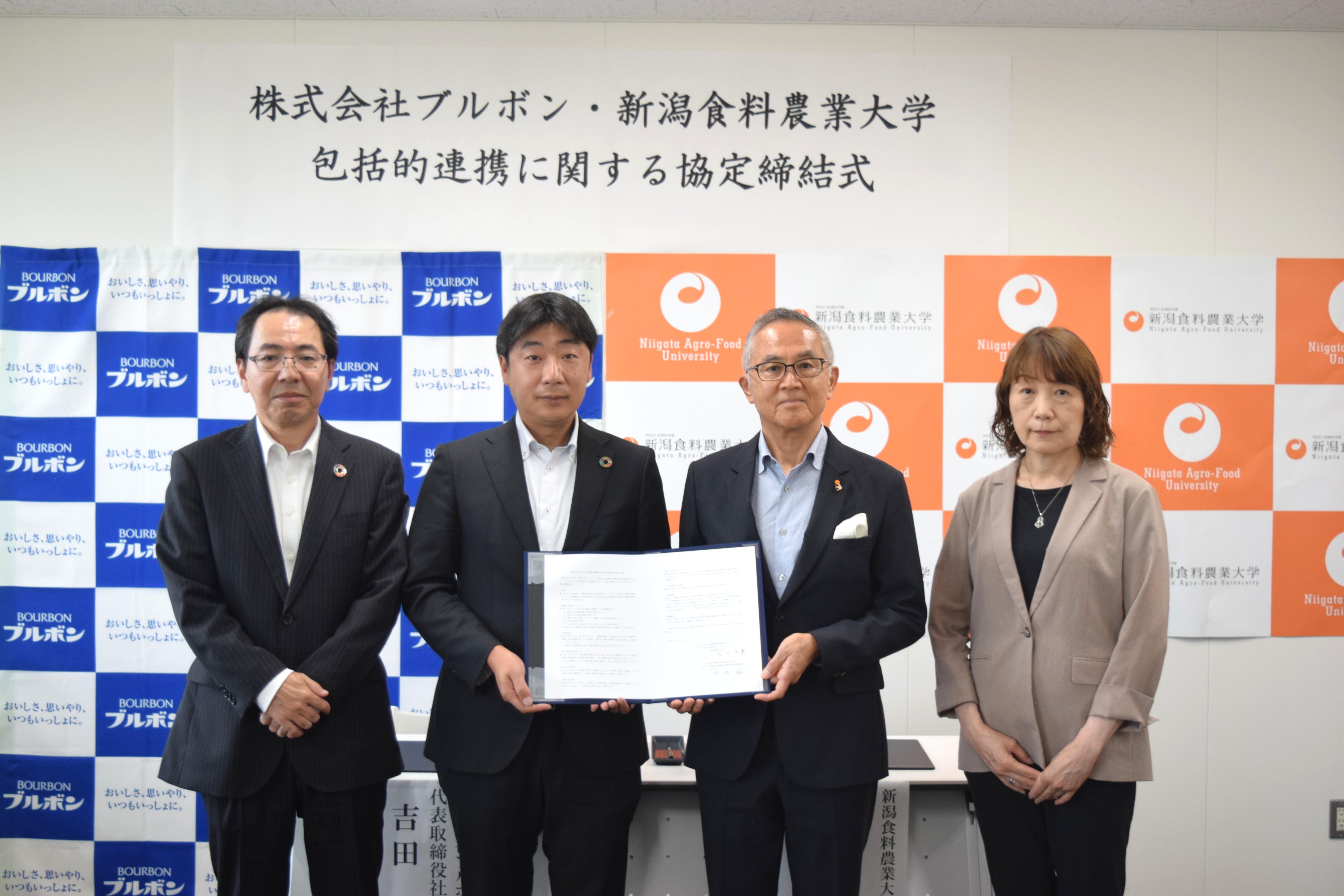 新潟食料農業大学と株式会社ブルボン 両者の強みを活かし、地域社会の活性化と産業の発展に寄与してまいります。