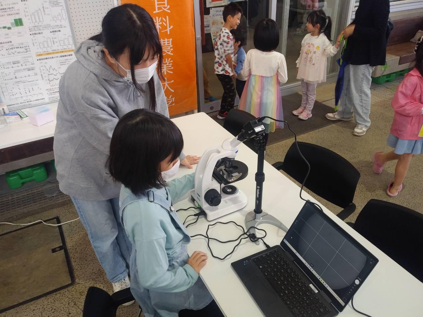 モニターに映し出された微生物に参加者はもちろん、家族で夢中になりながら、「いるいる!食べてる食べてる!」と興味津々な姿が印象的でした。水の中の世界を通じて、自然と人のつながりを感じてもらう時間となりました。