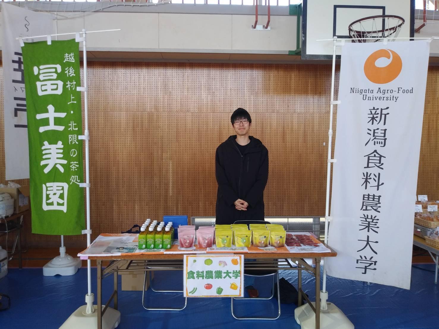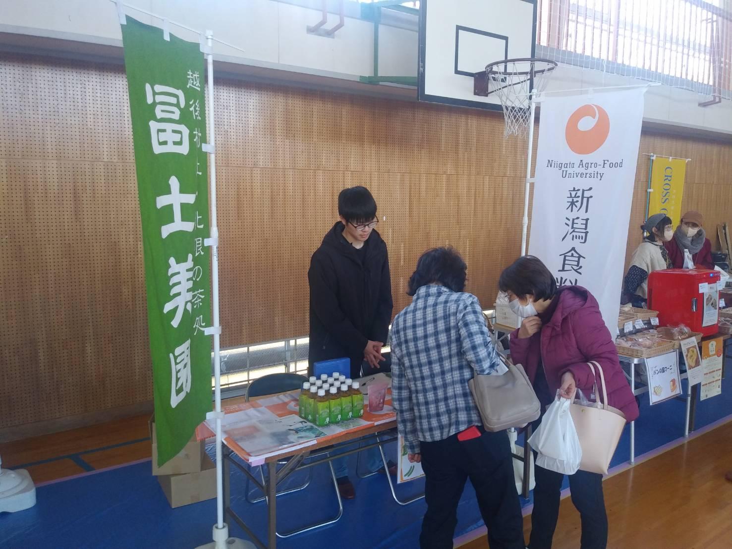 本学ブースでは、「メリッサ村上茶ハーブティー」「メリッサほうじ茶ハーブティー」「越後姫紅茶」のティーバッグに加え、メリッサ村上茶ハーブティーのペットボトルも販売しました。多くの方に手に取っていただき、参加した学生からは「地域の方々と直接お話しできて楽しかった」との声が聞かれました。