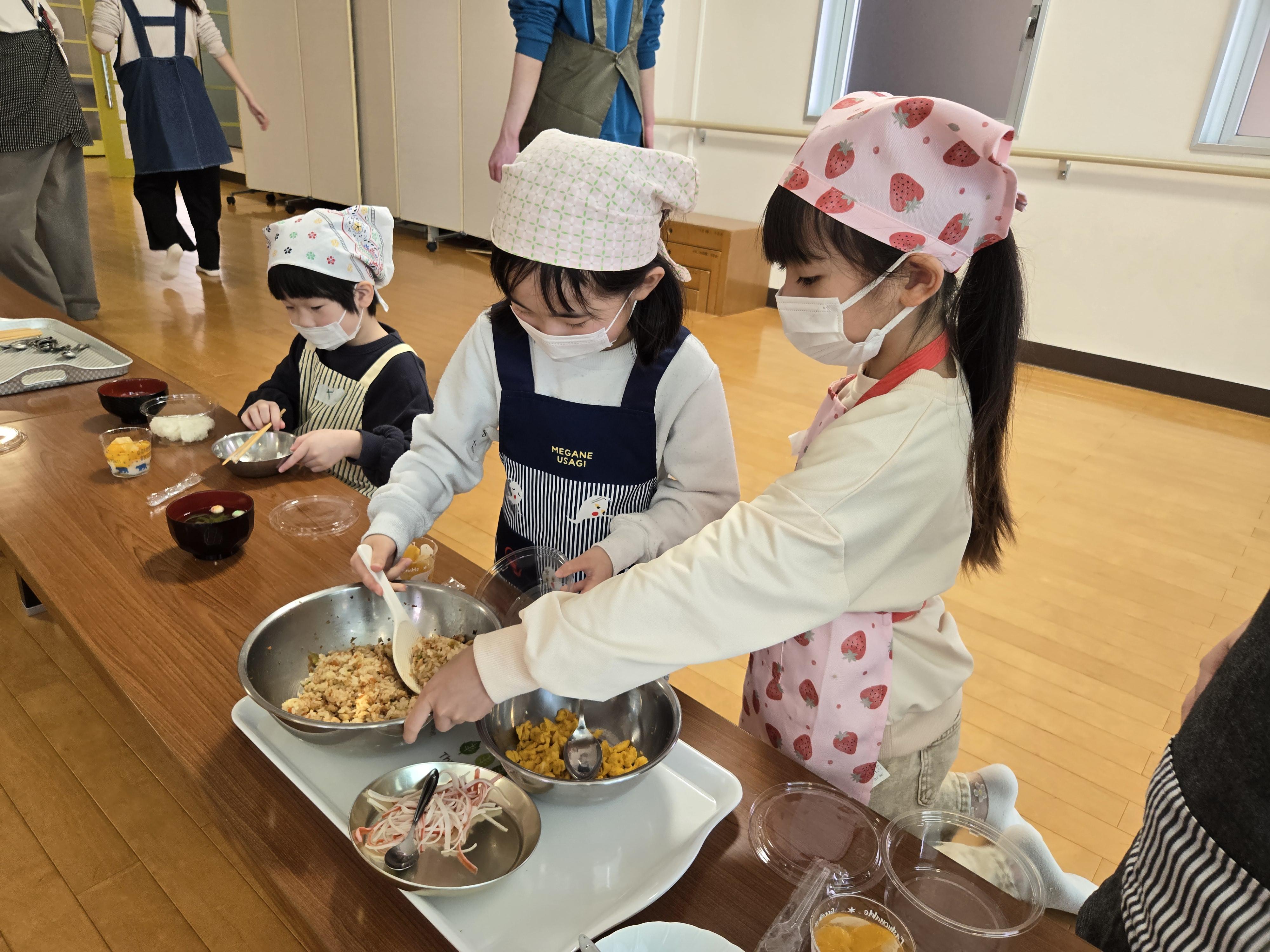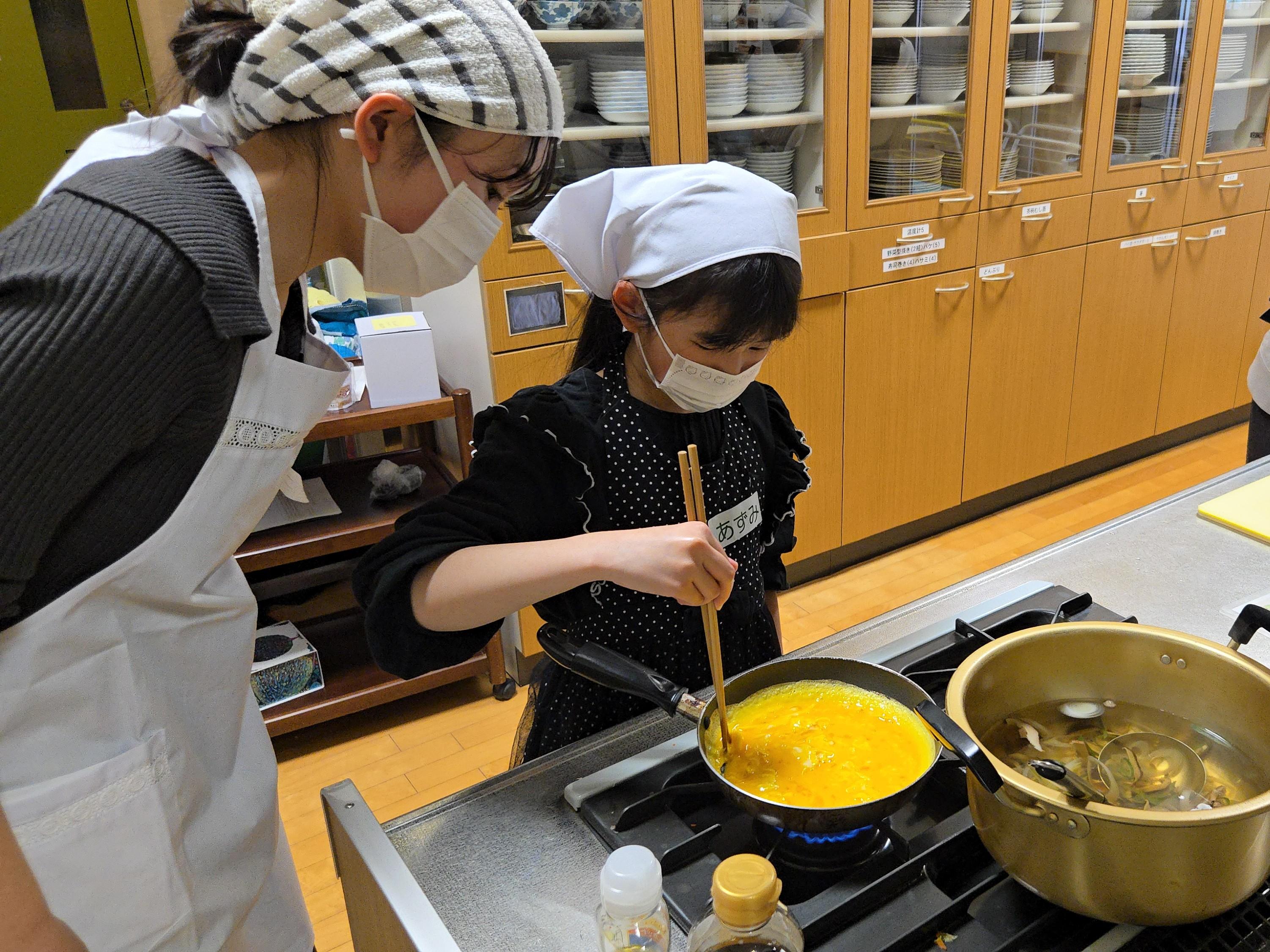 上に彩としてのせる炒り卵も、上手に作れました。