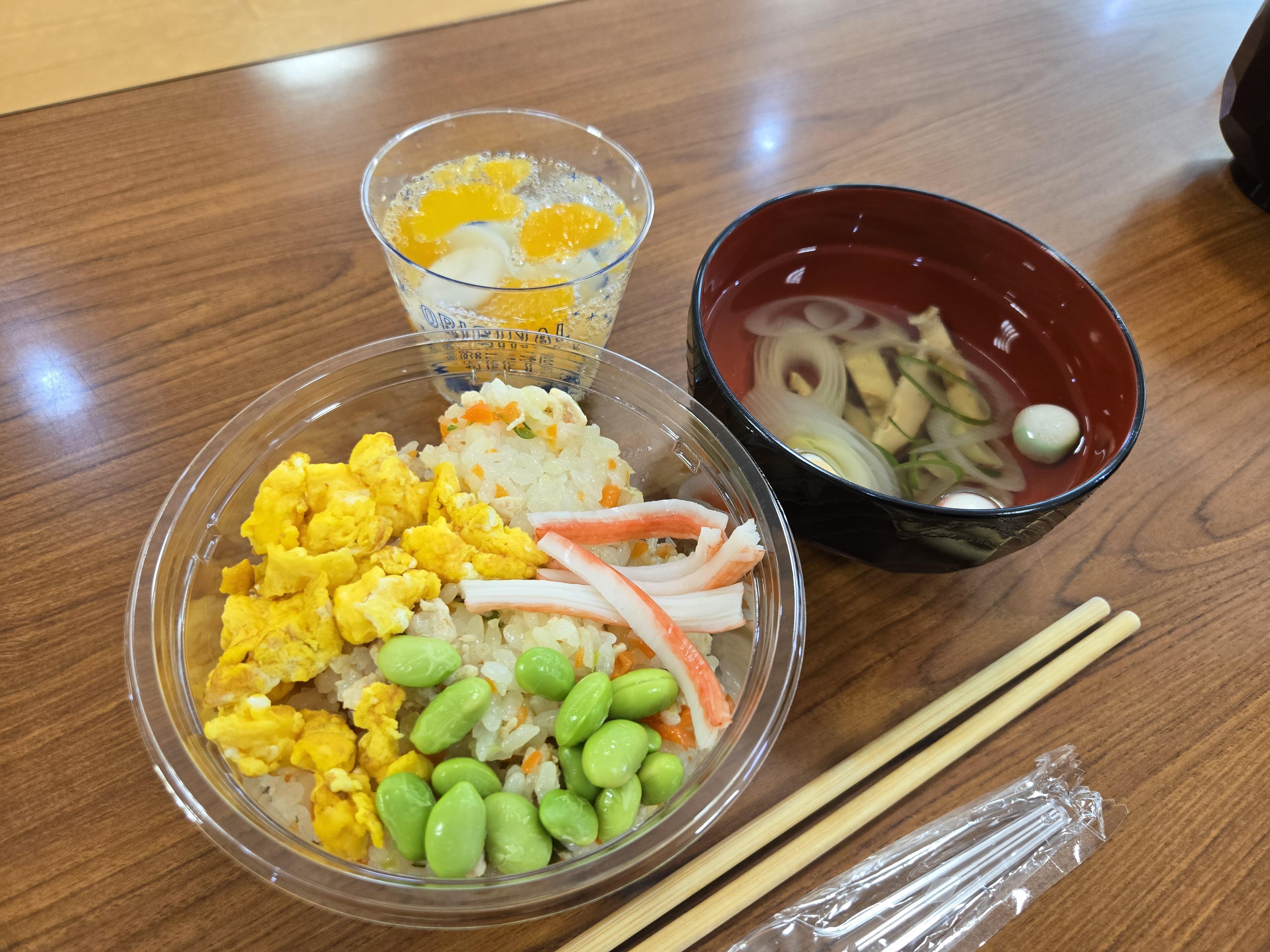 白玉フルーツポンチ・ちらし寿司を盛り付けて、完成!