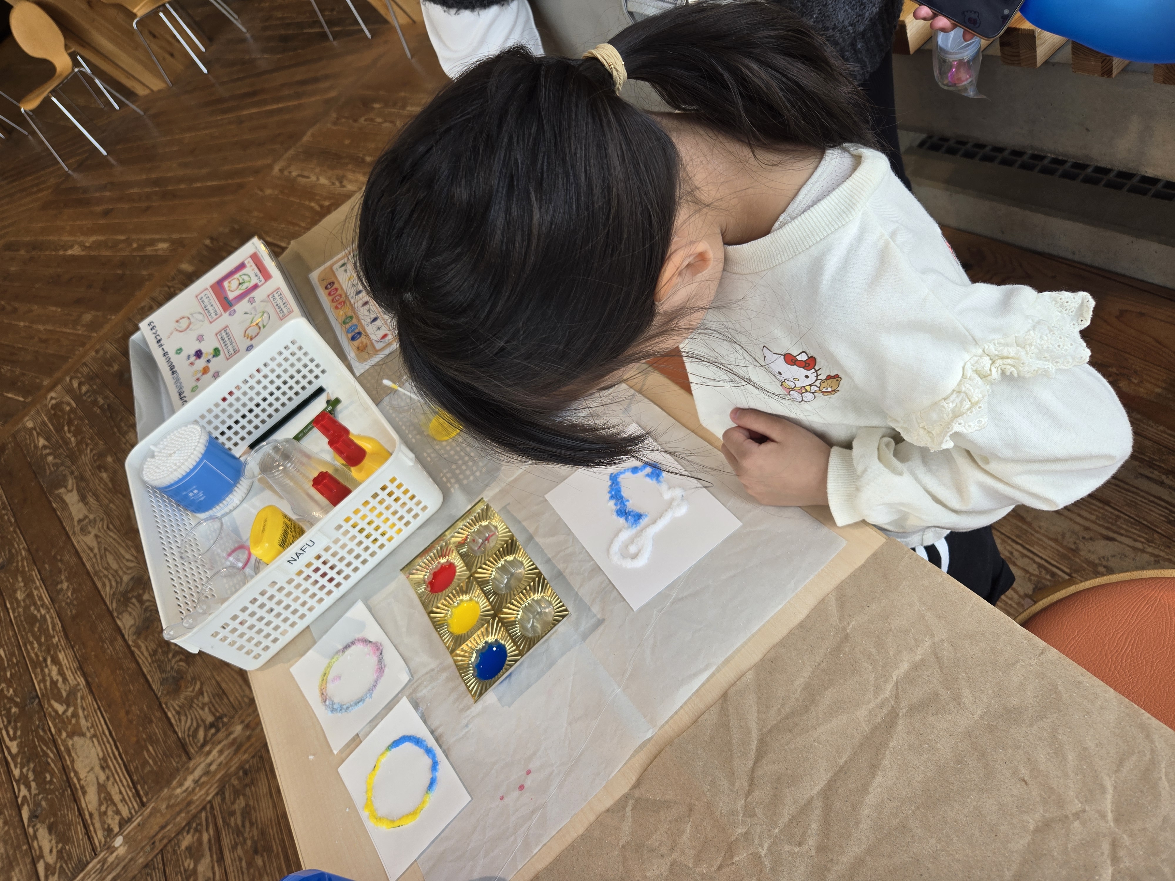 体験内容は、『ソルトペインティングでもこもこかわいいカードをつくろう』です。