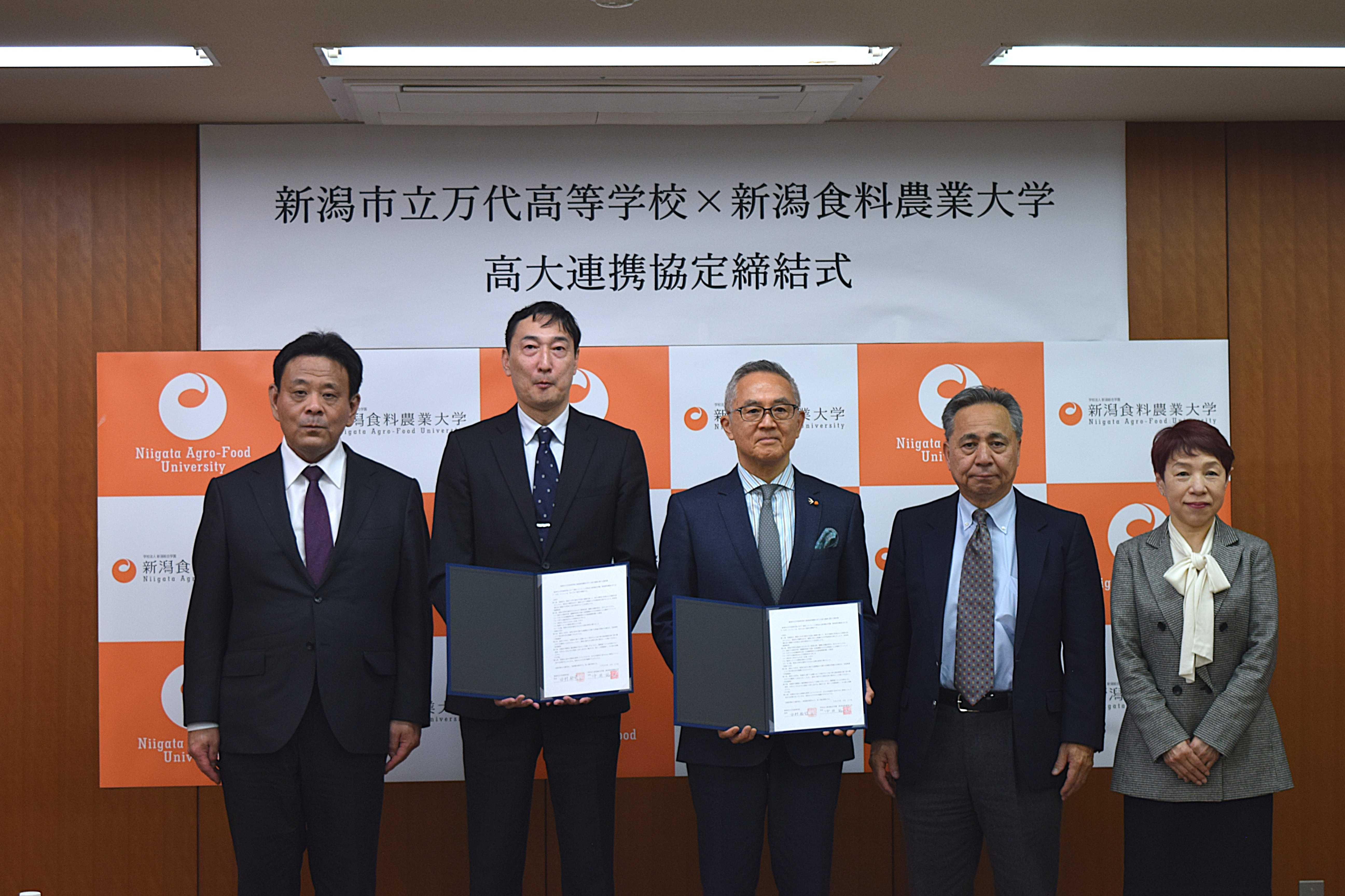 新潟食料農業大学は、3月11日(火)に新潟市立万代高等学校と高大連携協定を締結いたしました。