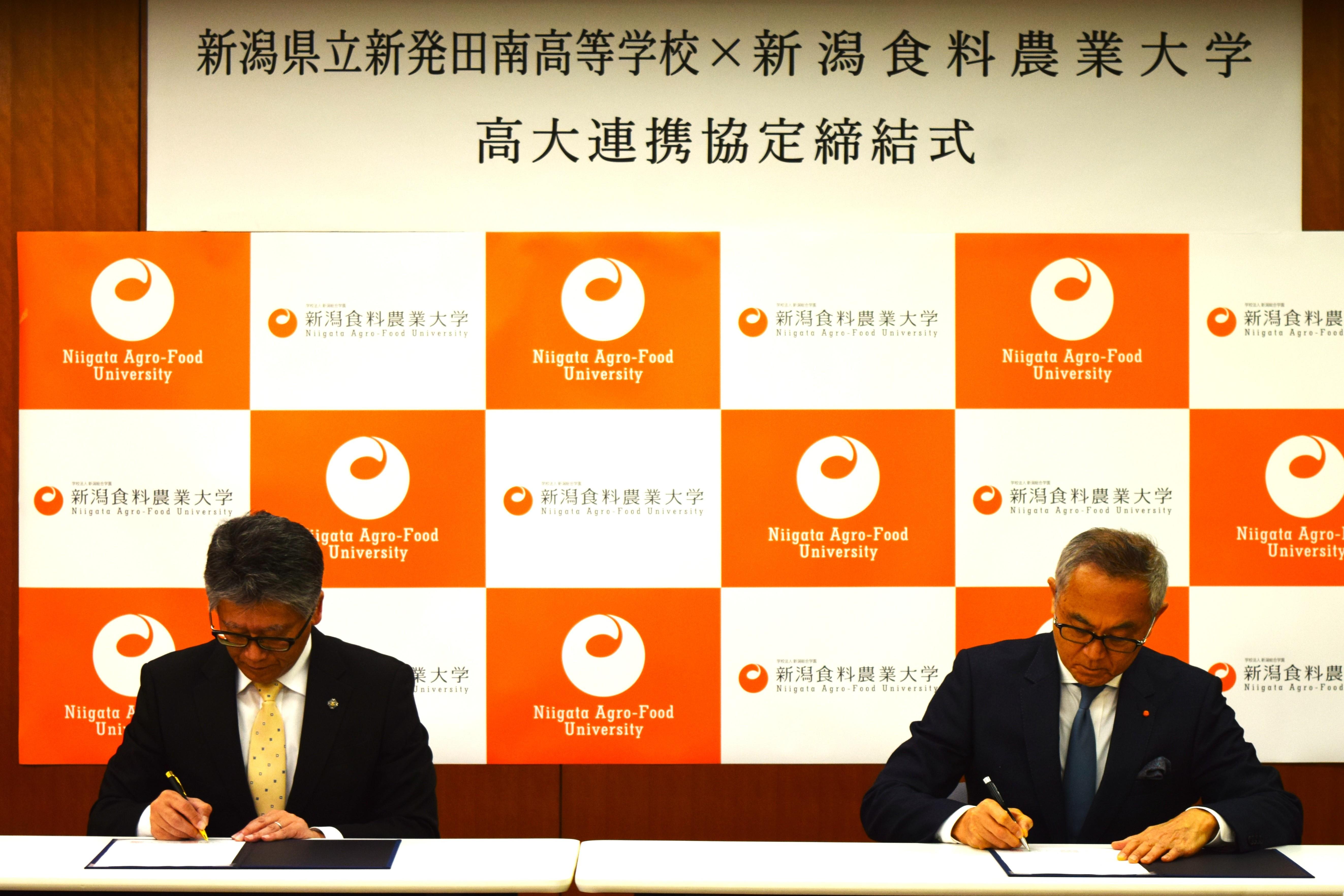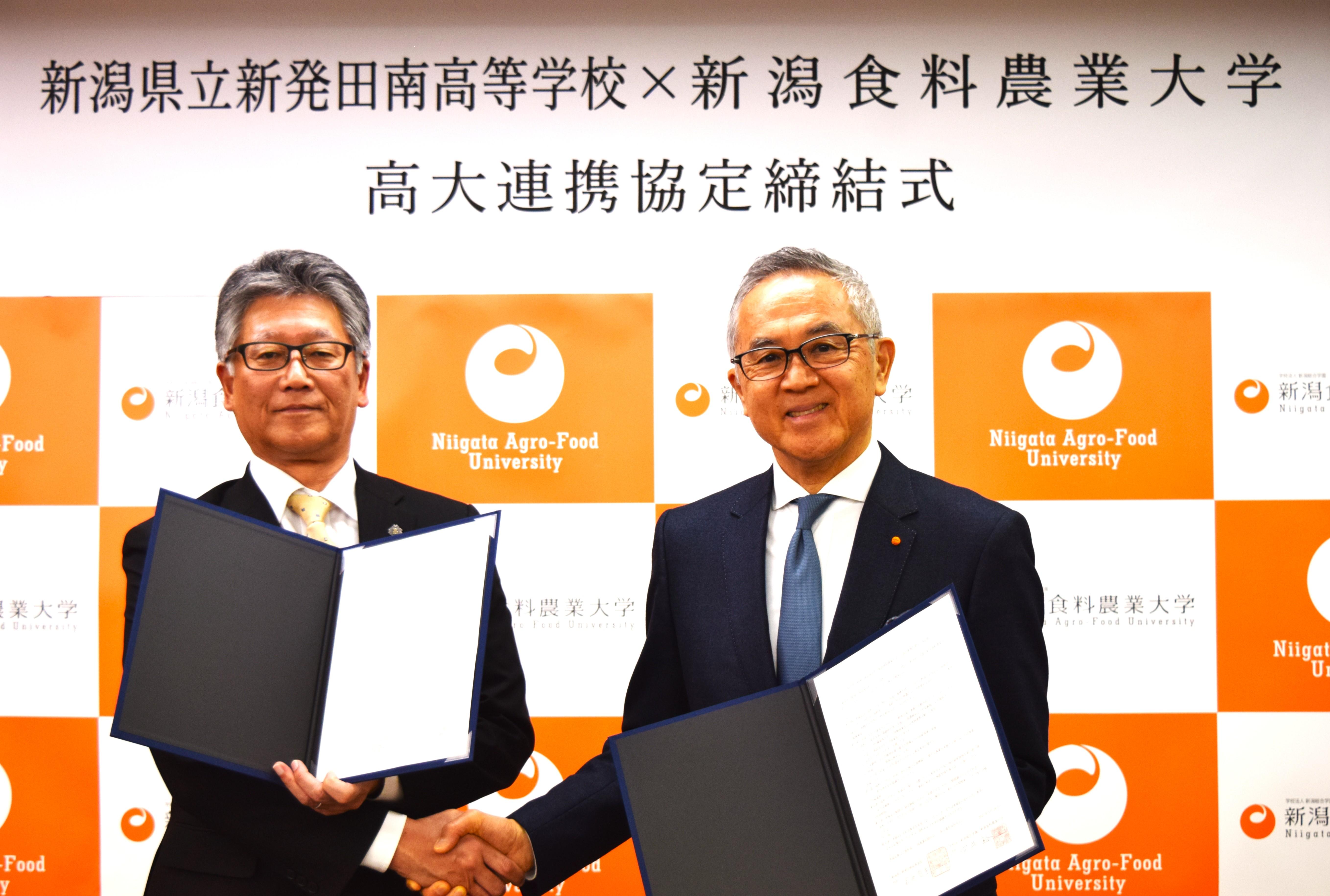 新潟食料農業大学は、双方の教育の質向上と地域社会への貢献を目的に、新潟県立新発田南高等学校と3月28日(金)に高大連携協定を締結いたしました。