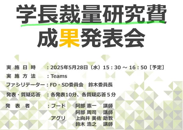 5月28日(水)に「学長裁量研究費 成果発表会」が開催されました。