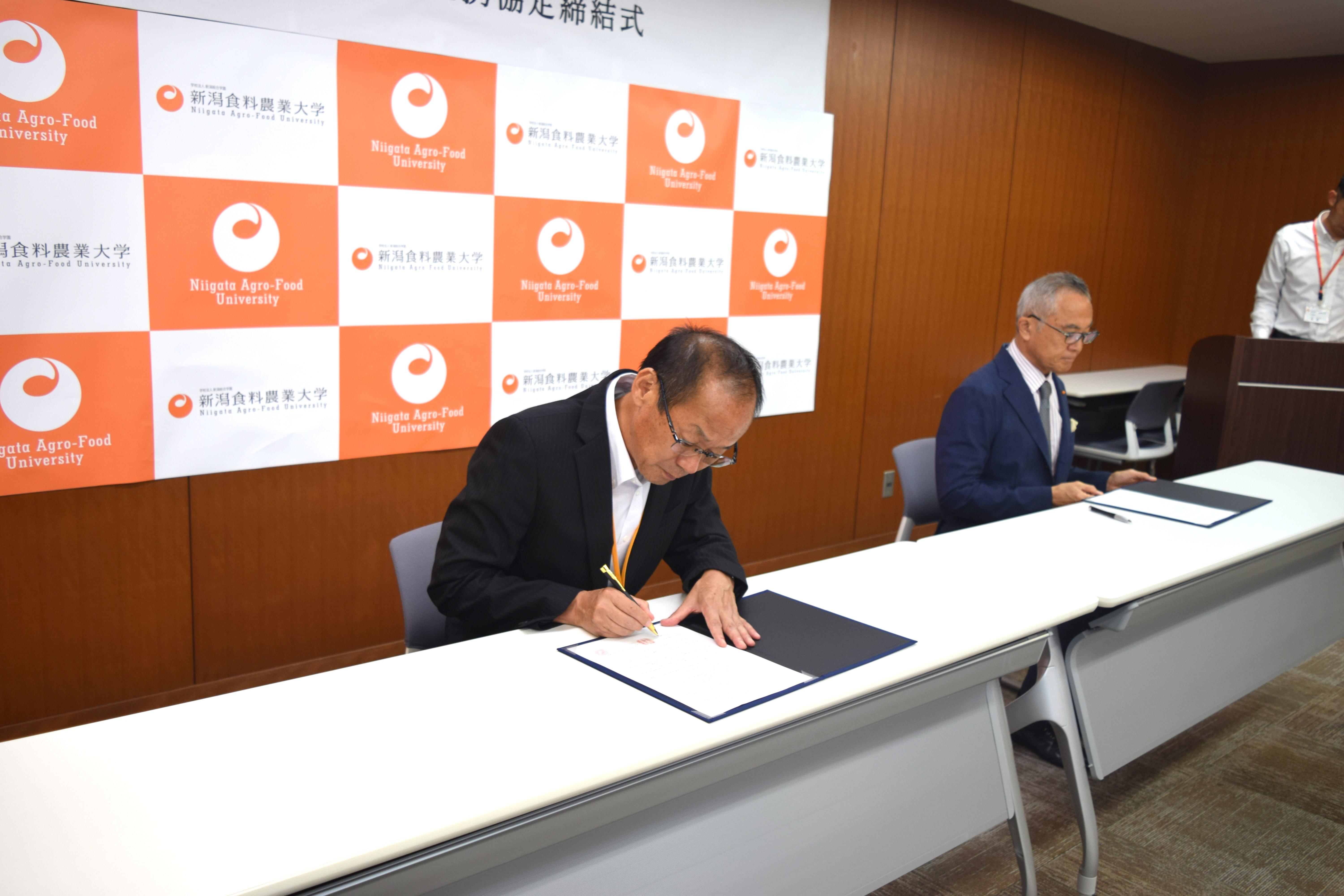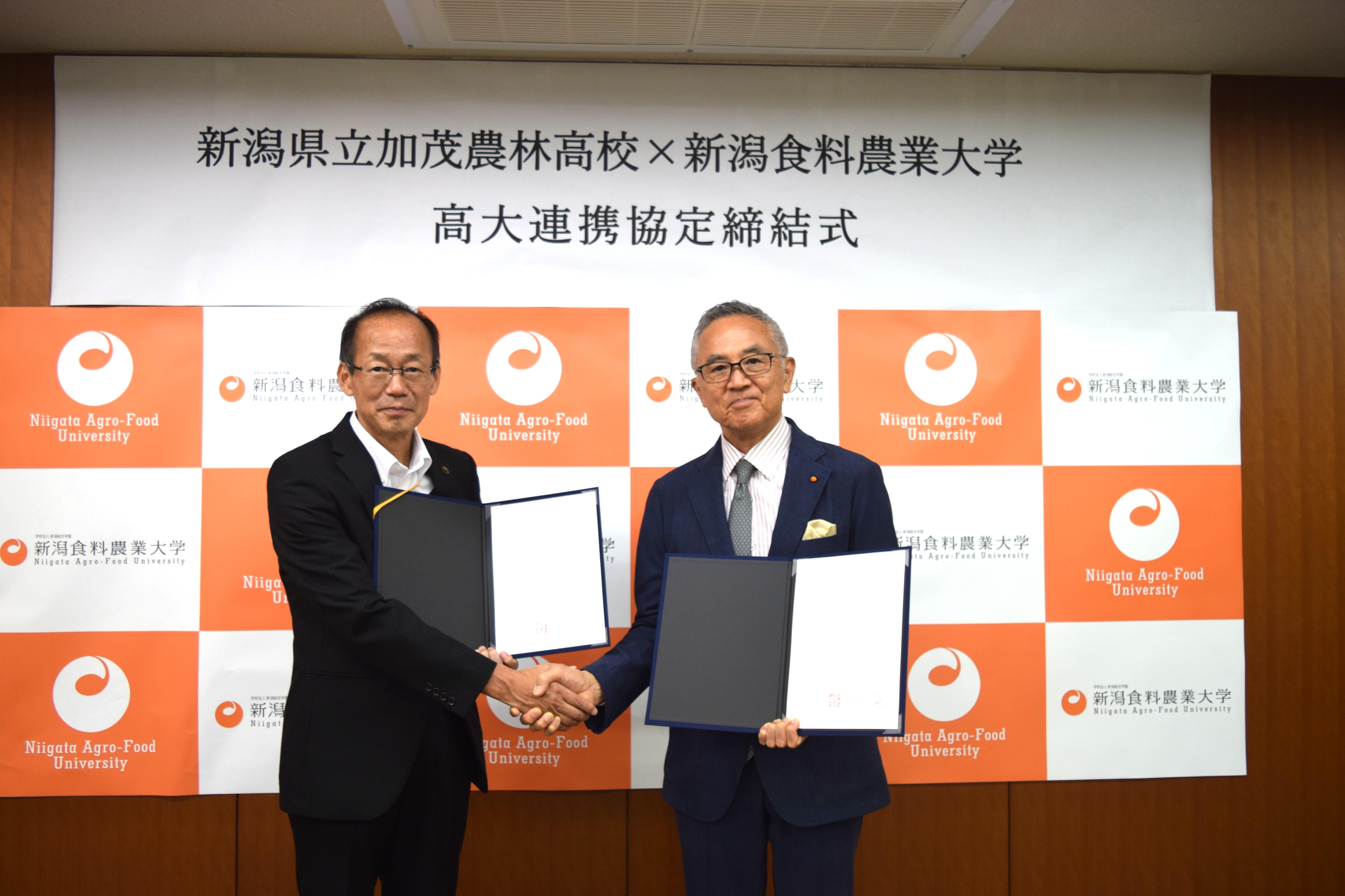 新潟食料農業大学は、双方の教育の質向上と地域社会への貢献を目的に、新潟県立加茂農林高等学校と7月31日(木)に高大連携協定を締結いたしました。