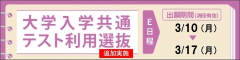 3月10日(月)より「大学入学共通テスト利用選抜(E日程)」の出願受付を開始いたします。
