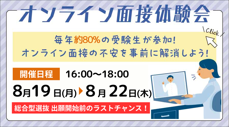 「オンライン面接体験会」では通信環境や接続方法の確認をはじめ、希望者には本番を想定した模擬面接も可能です。