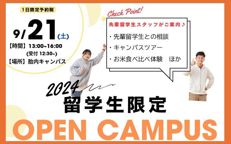 新潟食料農業大学では、外国人留学生限定のオープンキャンパスを開催します!