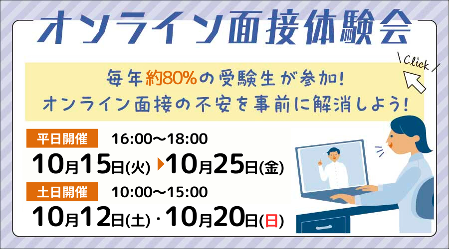 「オンライン面接体験会」では通信環境や接続方法の確認をはじめ、希望者には本番を想定した模擬面接も可能です。