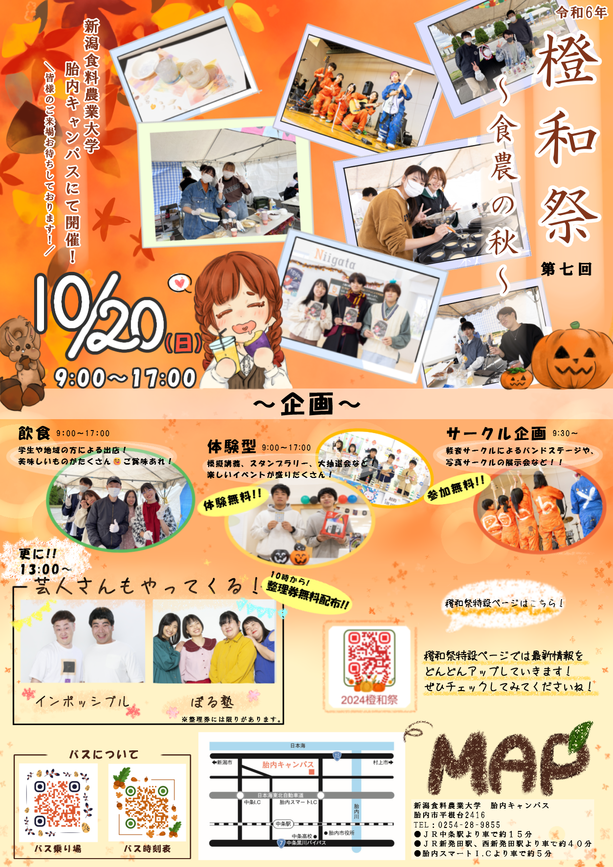 10月20日(日)新潟食料農業大学では大学祭「橙和祭」を開催いたします。
