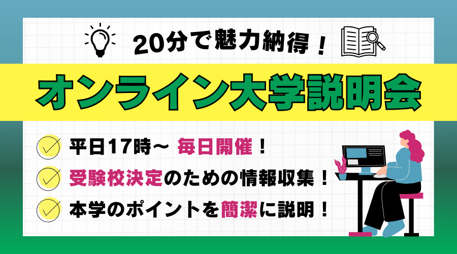 【平日17:00~毎日開催!】20分で魅力納得!オンライン大学説明会を開催します!