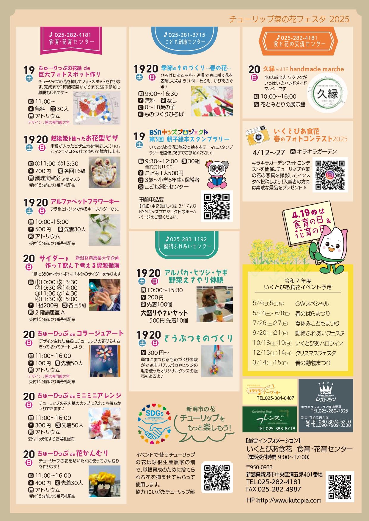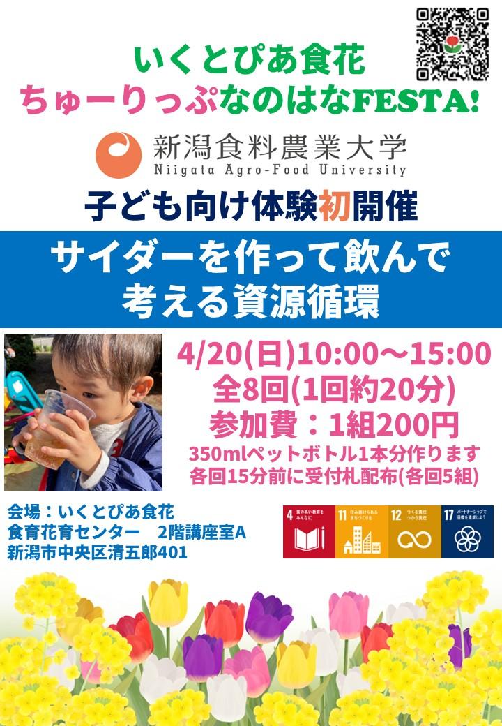 新潟市中央区いくとぴあ食花にて開催される、チューリップ菜の花フェスタ2025におきまして、本学がお子さま向け体験ブースを初出展いたします。