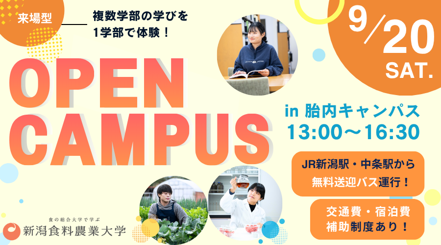 未来で活躍する人材育成を目的に、新潟食料農業大学の教育理念「畑から食卓まで」の考えのもと、年間を通じて食料産業(農業や食品加工、販売など)に関する専門的な教育・研究するこれまでにないプログラムです。