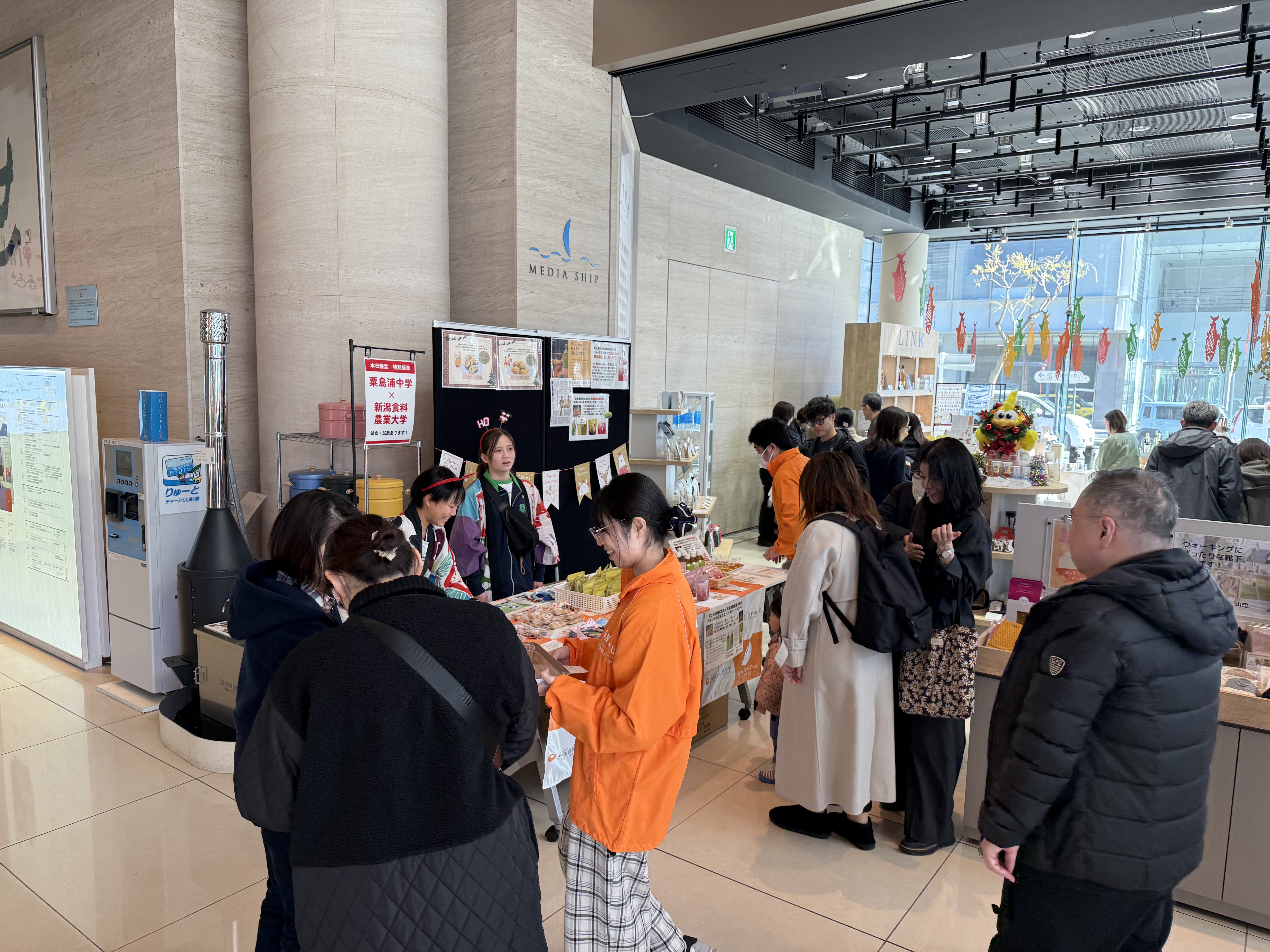先日、12/6(土)新潟市中央区にあります、新潟日報メディアシップ1階にて、粟島浦村より、粟島浦中学の生徒さん達も店頭に立ち、さつまいも米粉クッキーの販売を行いました。大変ご好評いただき、ありがとうございました!