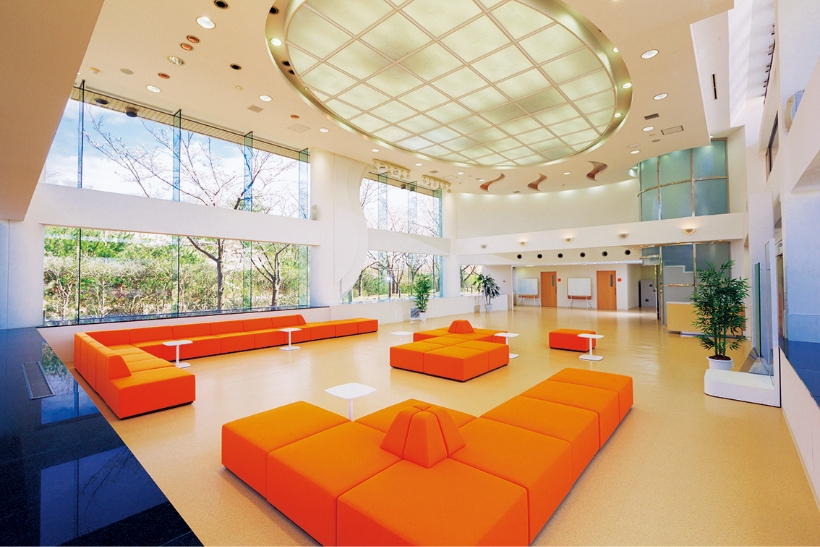 本学のメインカラーであるオレンジ色のソファーが学生たちを温かく迎えます。スクールバスまでの待ち時間などにリラックスして過ごせます。