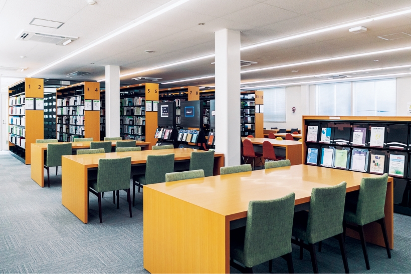 約9,000冊(新潟キャンパスと合わせて約13,800冊)の書籍が揃う図書館には、自習スペースやミーティングルームもあり、レポートの作成や課外活動の打ち合わせもできます。