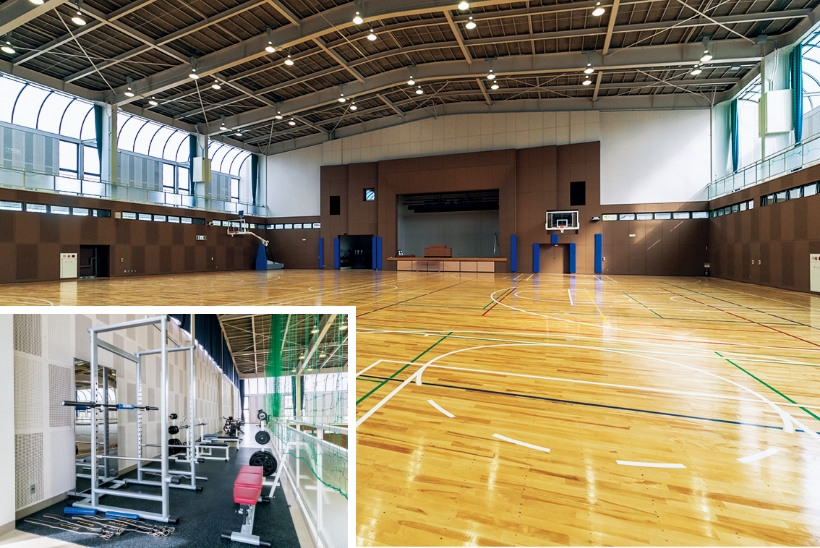 授業だけでなく、昼休みやサークル活動などで利用できます。アリーナにはウエイトマシーンも設置してあり、部活動のトレーニングで利用します。