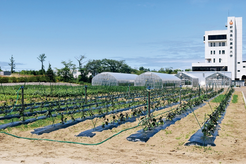 1年次に全員が畑での栽培・調査実習を行います。2・3年次のアグリコースの実習や卒業研究のフィールドとして、環境保全型農業、ICT技術による水耕栽培などに関する実習・研究を行うことができます。