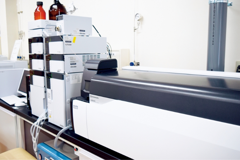 食品中のアミノ酸、有機酸、ビタミン類や、極微量に含まれる機能性成分、残留農薬・医薬品などの化合物を特定し、その含有量を測定することができる最新の分析機器です。