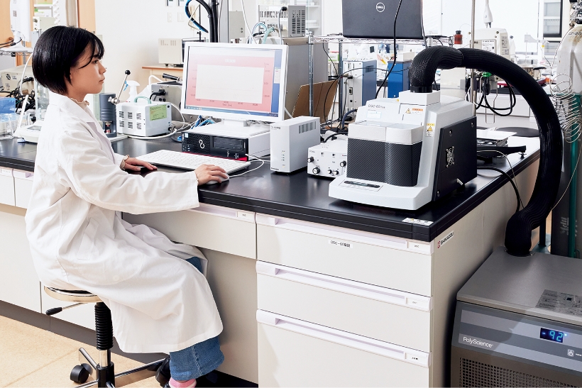 食品は種類が多種多様で、様々な成分が含まれています。そのような複雑な食品から、目的の成分がどの程度含まれているのかを分析できる最新の機器が揃っている実験室です。食品の栄養、美味しさ、機能性、安全性に影響する成分の定性・定量分析などにより高度な研究を行うことができます。
