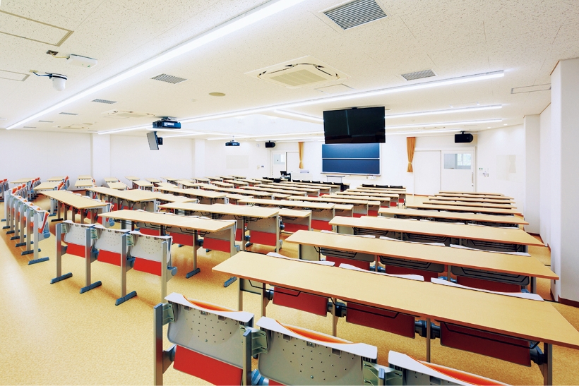 200名が一度に授業を受けられる大講義室です。新潟キャンパスでは、農業特区である新潟市ならではの、最先端の「食」「農」にかかわる「ビジネス」を学ぶことができます。