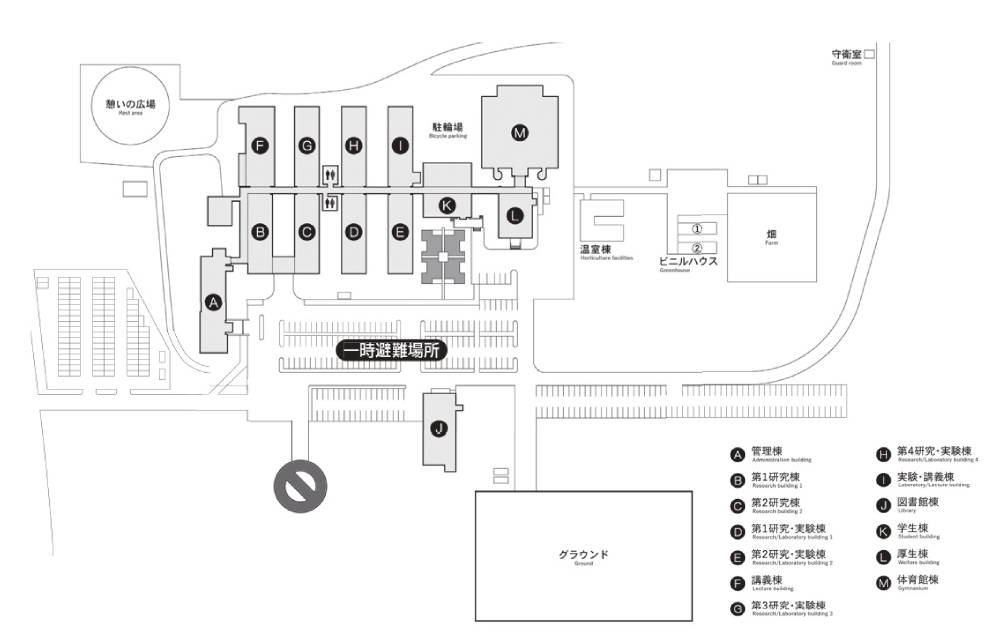 1年次の農学基礎実習や2年次以降のアグリコースの実習・研究で使用します。水田・畑・ビニールハウス・ガラス温室があり、多様な作物を有機栽培やリビングマルチを使った方法で栽培しています。