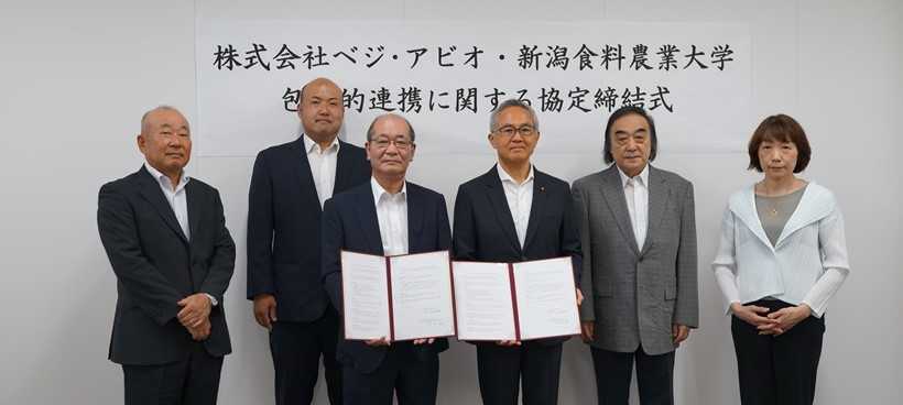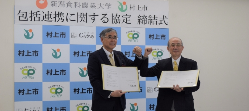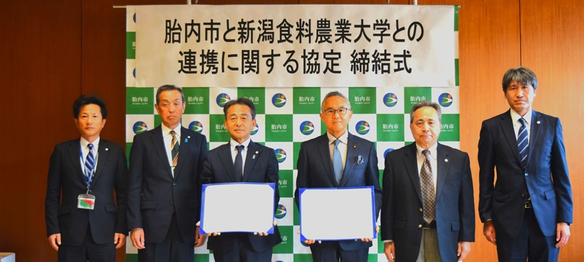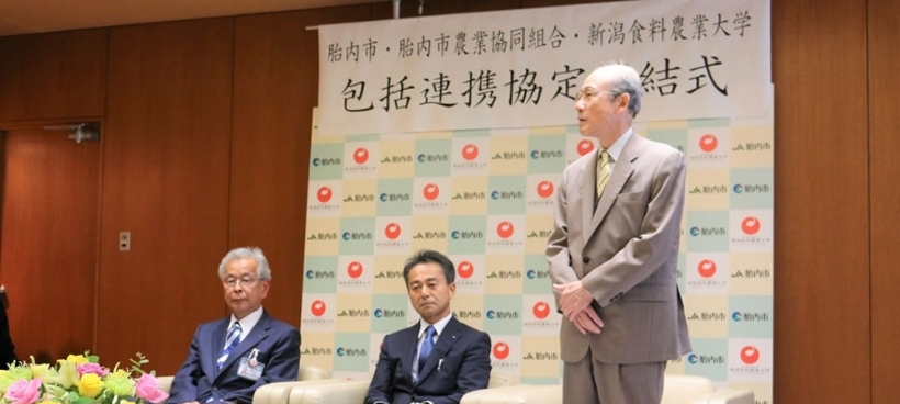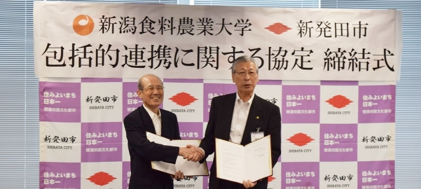 「食」や「農」をテーマに、それぞれが持ち得る「強み」や「特性」を活かしながら、新発田市の地域社会の発展や産業振興、未来を担う人材育成に寄与することを目的とする。 | 農業や食料の振興や教育・研究活動などに相互に連携して取り組む。 |
