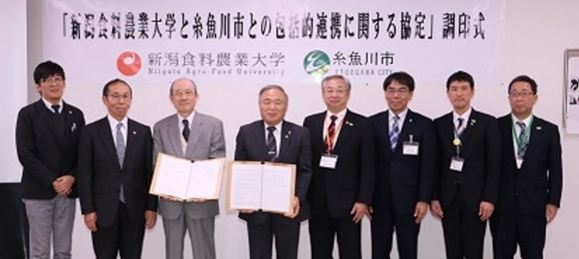 相互に協力をして新潟食料農業大学の研究成果等を社会に還元すること及び緊密な情報交換等を行うことにより、地域の活性化や国際社会の発展に貢献をするを目的とする。 | 教育・人材育成に係る講師派遣等による人材交流および産学連携の協力を推進する。 |