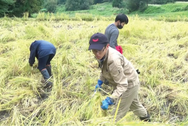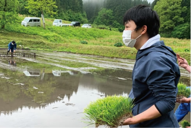 坂井地区で使われなくなった田んぼをどうするかという話し合いから始まり、地域の方々と一緒に考える中で、農薬を使わずにお米を栽培する活動が始まりました。米作りだけでなくお祭りや行事にも参加しており、地域の方々からたくさんのことを教えてもらっています。2021年度からは地域の作物を使った、”オリジナル炊き込みご飯の素”を開発するプロジェクトを進めています。