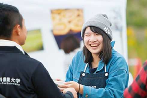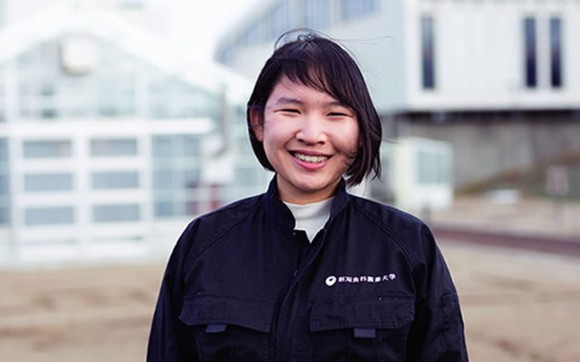 高校生のときに将来薬用植物について勉強したいと思い、薬学部か農学部を調べていました。植物自体を研究できるところを探していたところ、新潟に新しい大学ができることを知りました。また、コース選択も2年次からで様々な分野を学べて選択肢を広げられることに魅力を感じました。夏休みには、先生たちのサポートとして毎日圃場に通い、トウモロコシやナスの栽培を手伝いました。自然に囲まれて、友だちや先生方と一緒に体を動かしていることがとても楽しいです。