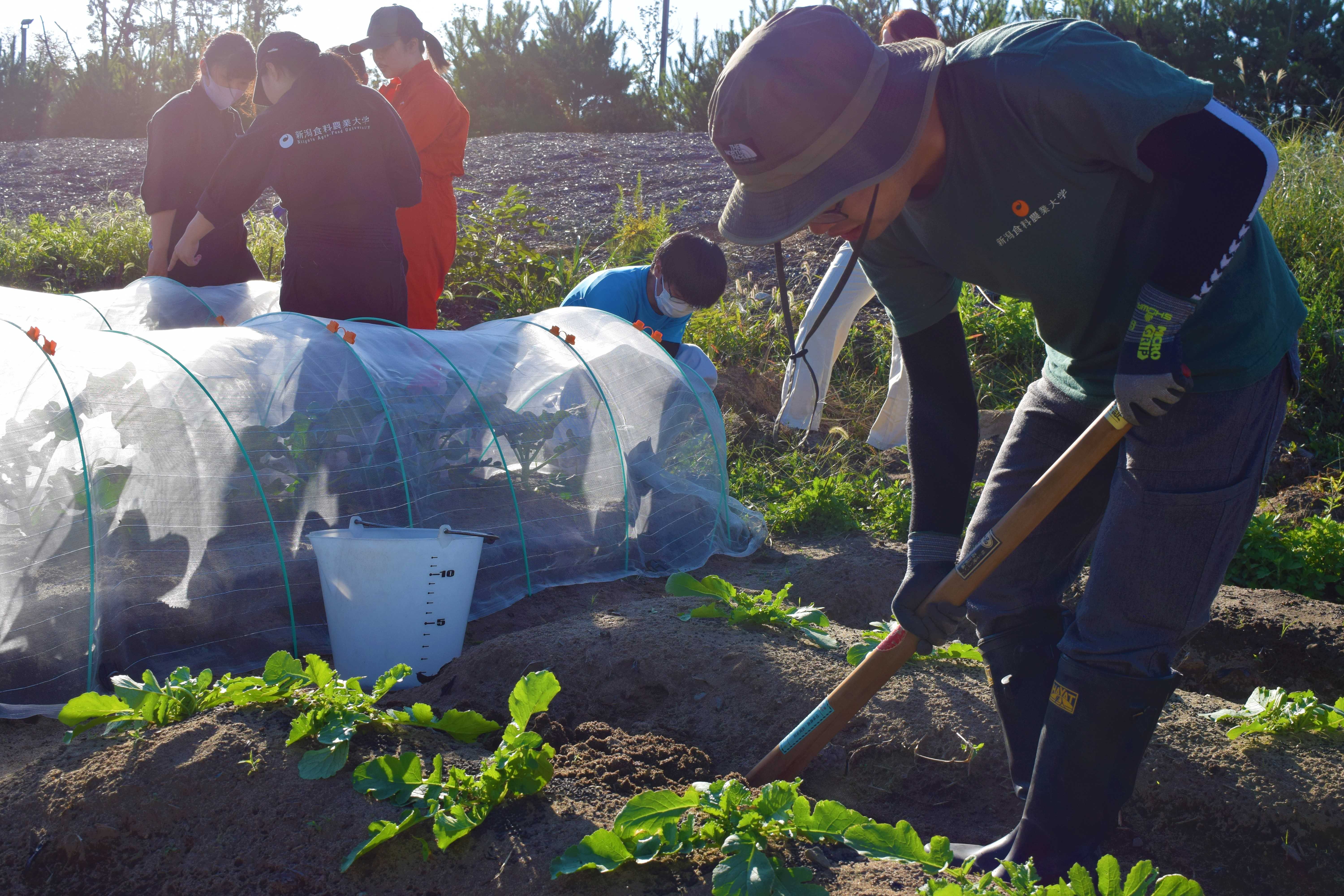 高校を卒業して、医薬品製造の現場で働いていましたが、実家が営む農業を自分の代で終わらせるのはもったいないと思い、生産から加工・販売までをすべて学べる本学に魅力を感じ、将来に向けて一から勉強しようと思い、本学を志望しました。
