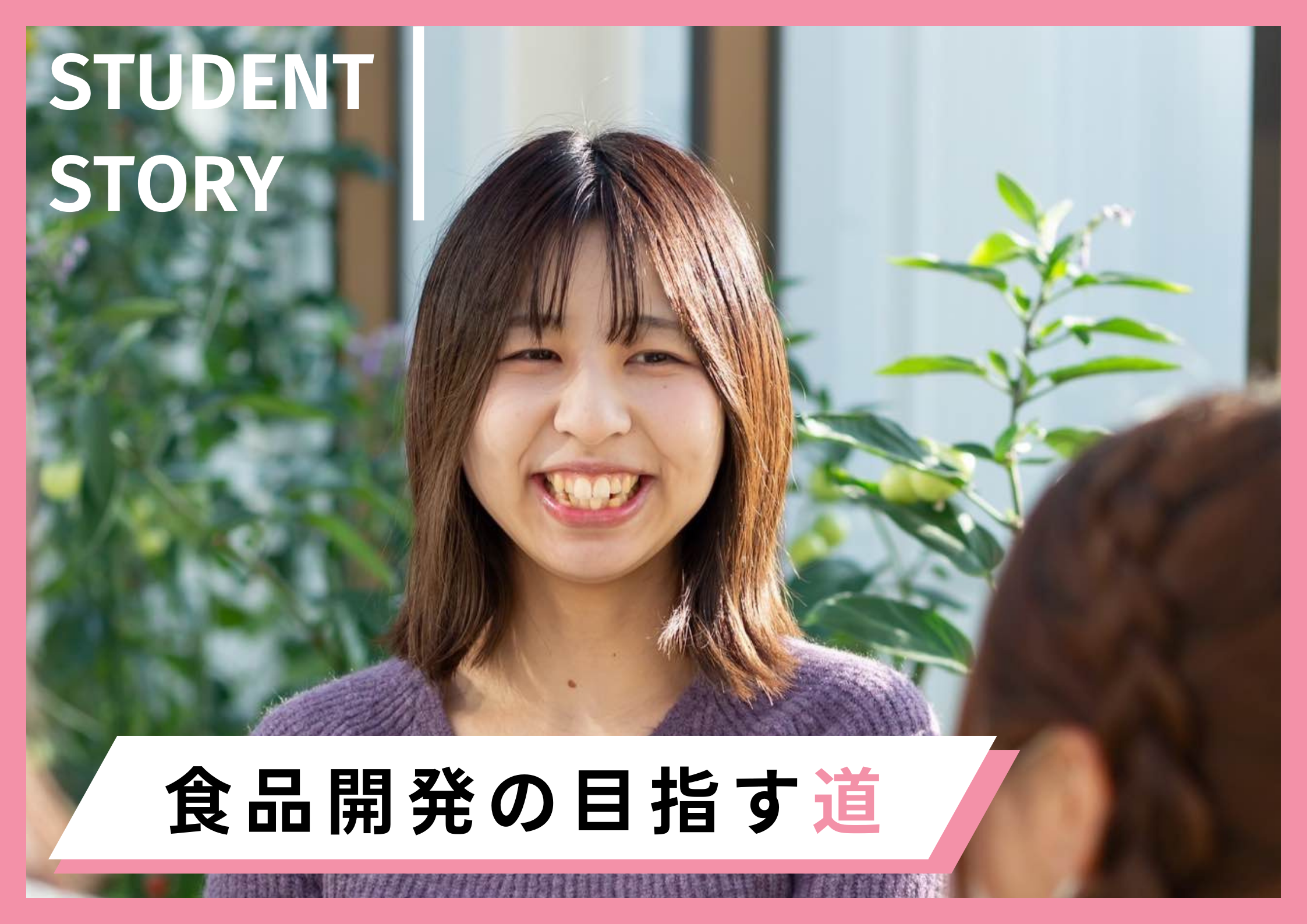 「食品学概論」で、自分の地元の特産品を使った商品を考える課題をきっかけにフードコースを選択しました。将来、商品開発に携わるためにも、加工と食品科学は密接に関係しているので、今後もしっかりと学び、将来の夢である食品開発の仕事に活かしていきたいです。